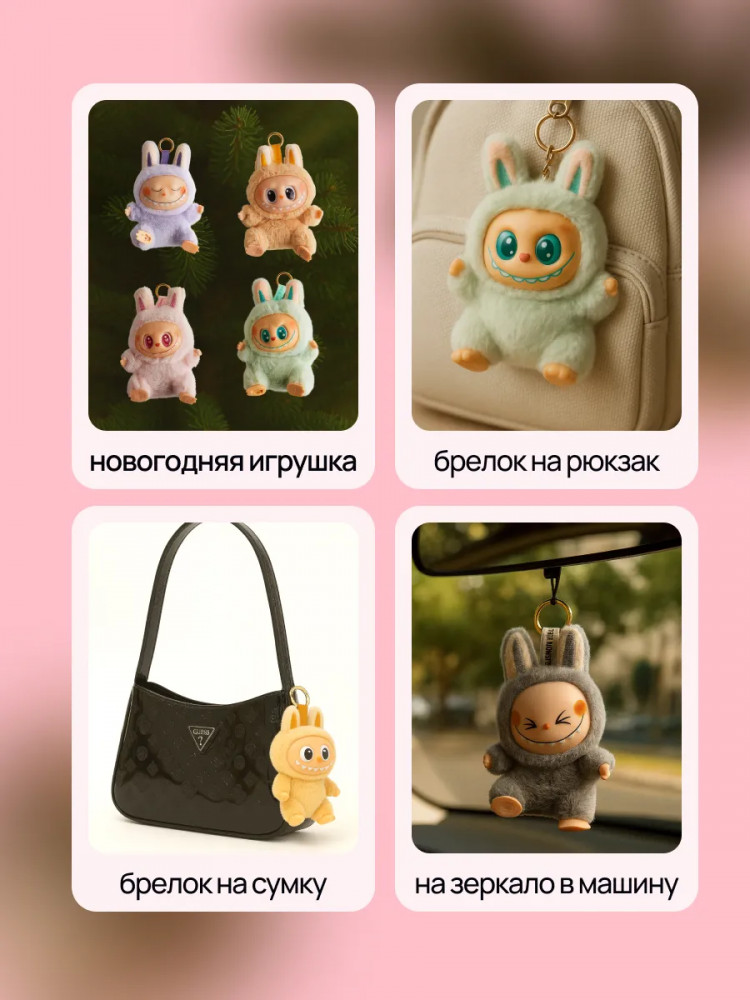 💳 Оплатить за товар можно при получении 🇰🇿 Есть бесплатная доставка по Казахстану от 1 дня 🎁 Копите бонусы с каждой покупки Милейший брелок «Лабубу» с карабином для сумочки, рюкзака, ключей. Данный аксессуар — это отличный способ выразить свою любовь. Полюбившиеся монстры, то ли зайцы, то ли волки, популярные во всем мире, нравятся и детям, и взрослым. Забавный брелочек Лабубу не оставит ваши вещи незамеченными, выполнен из винила, флокирован текстильным волокном, что создает ворсистый вид и приятное тактильное ощущение. Благодаря карабину можно легко снять и повесить на любые сумки, рюкзаки, пенал, ключи, авто зеркало в машину. Трендовая мини игрушка отлично подойдет в качестве подарка ребенку или для близкого человека по любому поводу. |
