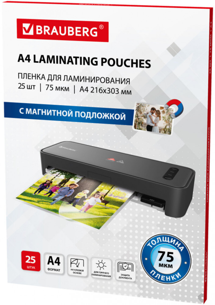 МАГНИТНАЯ пленка для ламинирования BRAUBERG надежно защитит документы от всех внешних воздействий. Благодаря магнитному слою, после ламинирования плёнку можно разместить на магнитной доске в школе, на холодильнике, или другой подходящей поверхности.