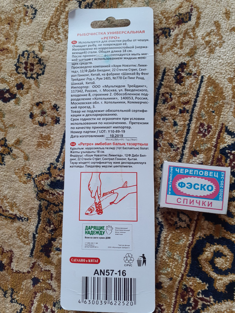 Рыбачистку получила на днях, не испробовала ещё на деле, дополню после. На вид хорошее качество, из коррозионностойкой стали, 18 см общ., к тому же много положительных отзывов на этот товар. Мы покупаем свежую рыбу в магазине, там они чистят от и до и на кусочки разделывают, могут нарезать по желанию. Рыба готова к приготовлению! Но иногда бывает в год пару раз мы ездим на рыбалку, и вот тогда понадобится это Ретро Рыбочистка!