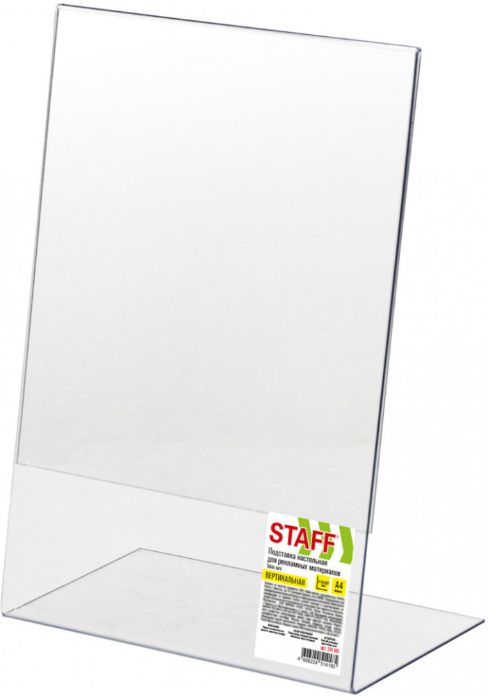 Staff Подставка настольная для рекламных материаловВ данный момент этот товар отсутствует в продаже. Возможно, у нас найдется аналогичный или похожий товар здесь. Односторонняя вертикальная настольная подставка Staff подходит для размещения меню, рекламных материалов формата А4. Изготовлена из прочного прозрачного ПЭТ. Предназначена для настольного размещения. Формат — А4 и меньше. Максимальная высота вставляемого листа — 297 мм, максимальная ширина вставляемого листа — 210 мм. |