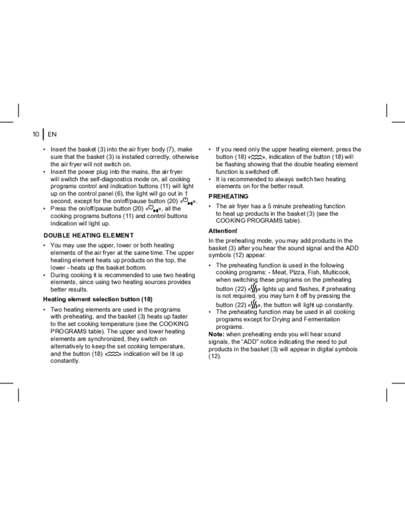 • 10 программ: мясо, фри, пицца, птица, рыба, овощи, кекс, сушка, ферментация, мультипекарь;