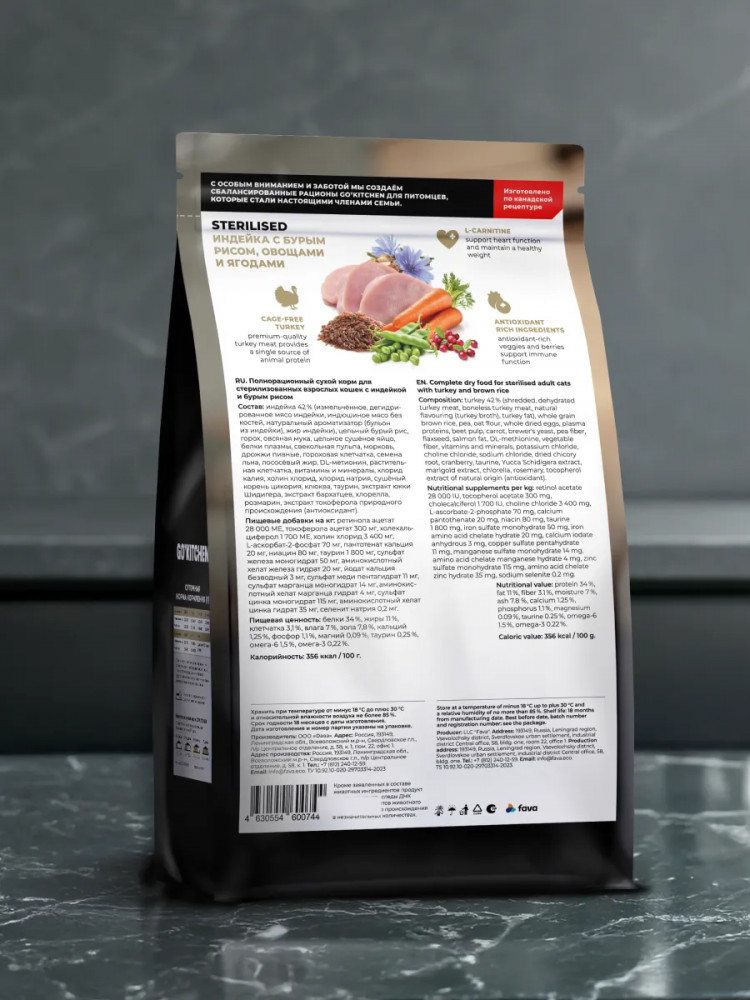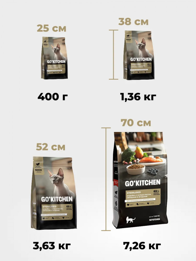 Go'kitchen Корм сухой для стерилизованных кошек с индейкой и бурым рисом «Sterilised Turkey»
