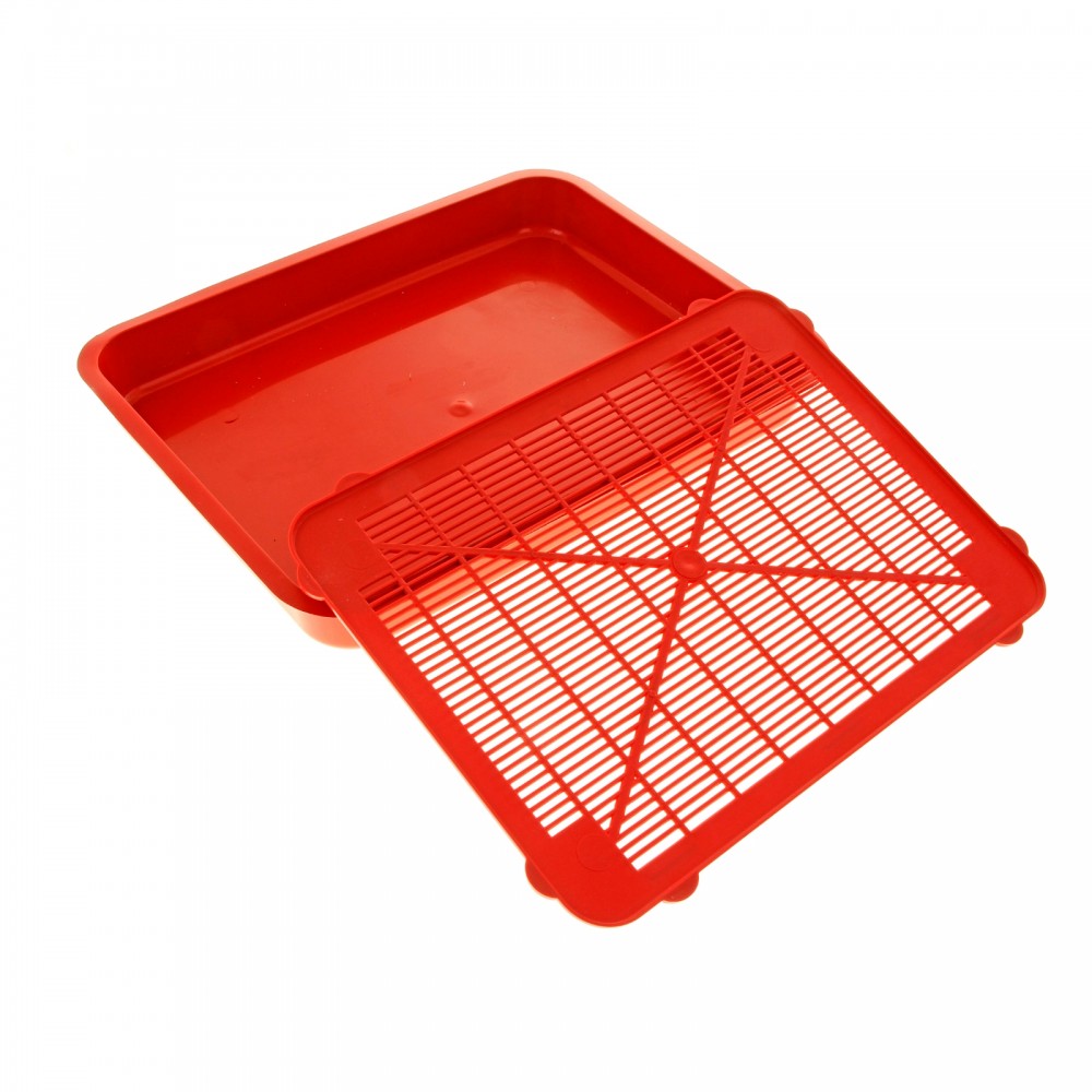 Товар получила в бордовом цвете, но сетка внутри маленькая чем сам лоток. Или так и должно быть. В общем не понятно. Бортики не высокие, приходится после каждого процесса кота, ходить с совком и веником.