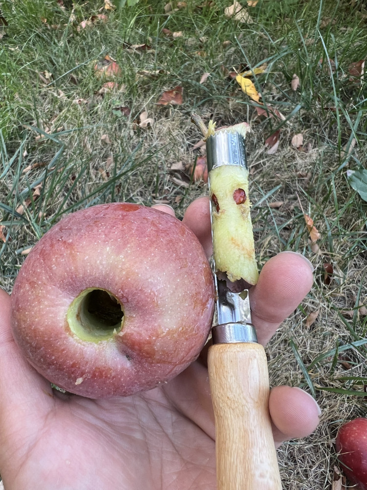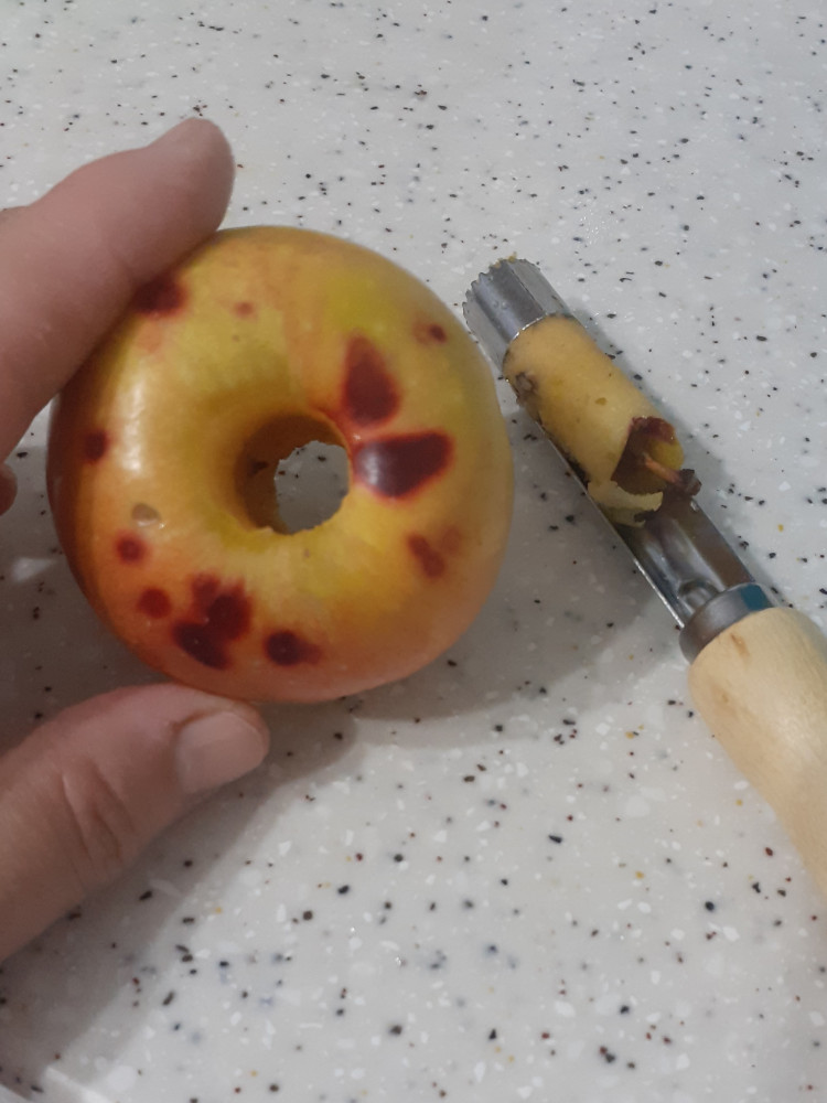 Яблокорезка супер! Сердцевина яблока удаляется без особых усилий. Просто нужно прокрутить инструментом середину яблока и ву аля, всё чисто!