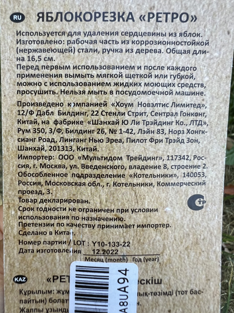 спасибо за яблокорезку ретро. красиво упакован