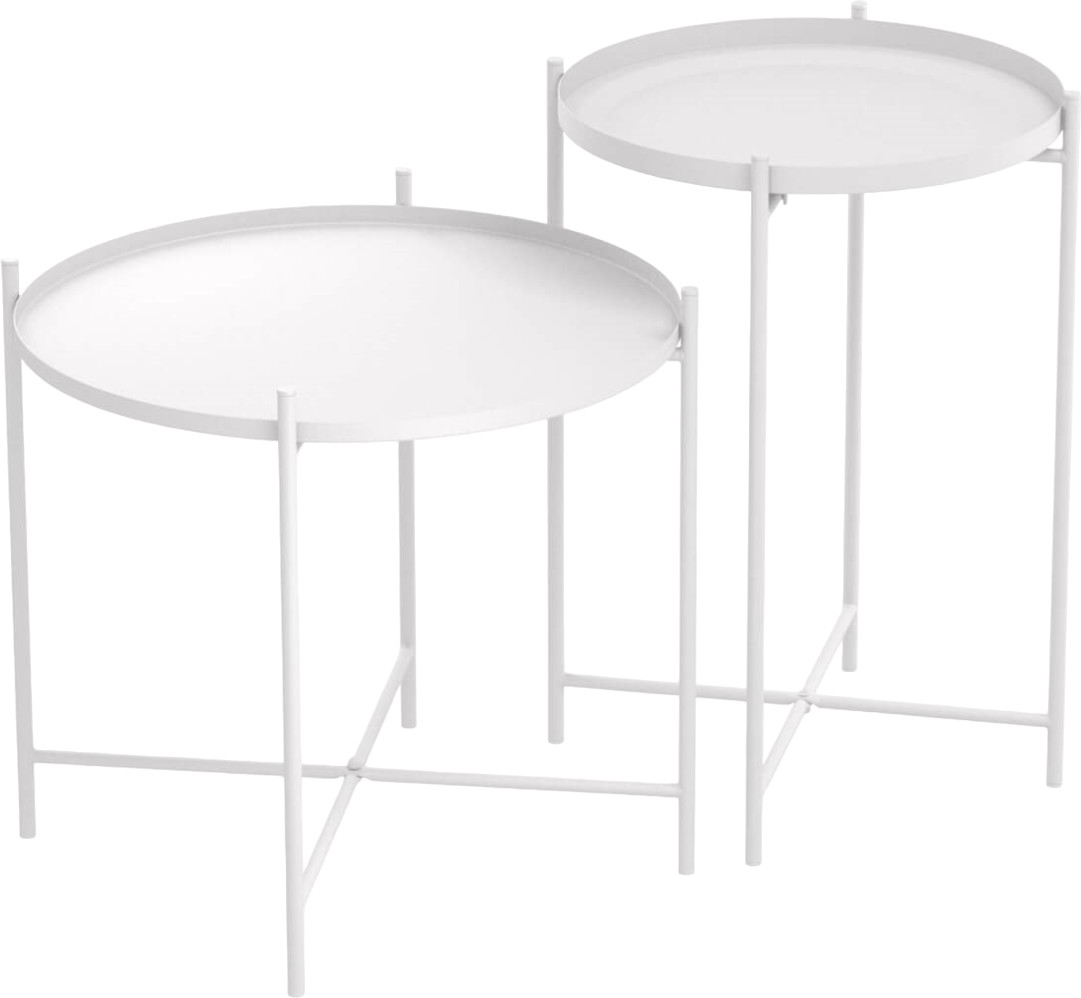 Комплект журнальных столиков — это стильное и функциональное решение для дома или офиса. Два столика разных размеров и высоты можно соединить в одну композицию или разсестить в разных помещениях. Лаконичный дизайн позволяет использовать эти кофейные столики не зависимо от стиля вашего интерьера. Столешницы съемные и их можно использовать в качестве подноса для перемещения чая или кофе из кухни к телевизору или ноутбуку. Бортик по краю столешницы позволяет бокалам и тарелкам не упасть во время использования.