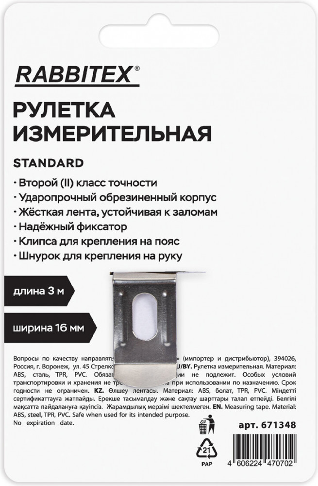 💳 Оплатить за товар можно при получении 🇰🇿 Есть бесплатная доставка по Казахстану от 1 дня 🎁 Копите бонусы с каждой покупки Рулетка RABBITEX применяется для измерения размеров поверхностей и расстояний. Благодаря эргономичному дизайну и высокому классу точности измерений рулетка станет незаменимым помощником в быту и профессиональной деятельности. |