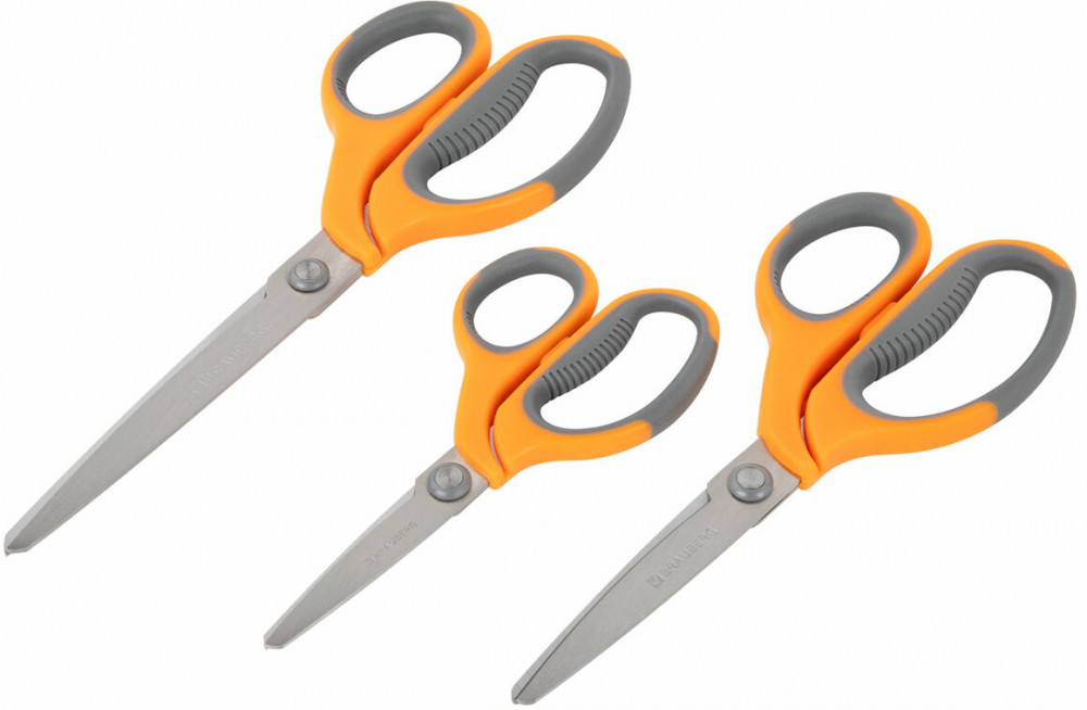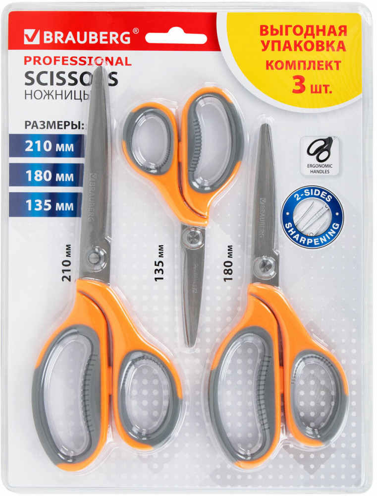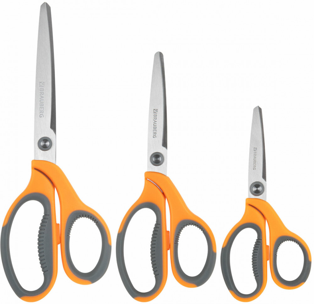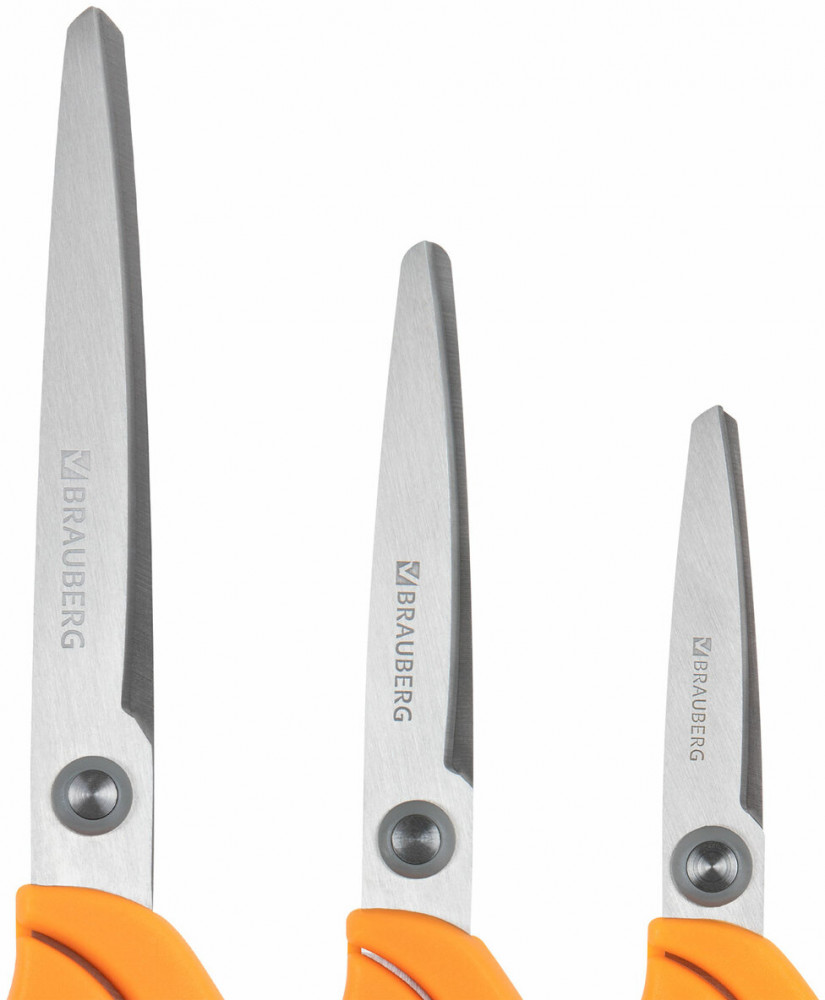 Набор универсальных ножниц Brauberg. Эти ножницы идеально подходят для резки бумаги, картона и других материалов, что делает их незаменимыми как в офисе, так и дома.