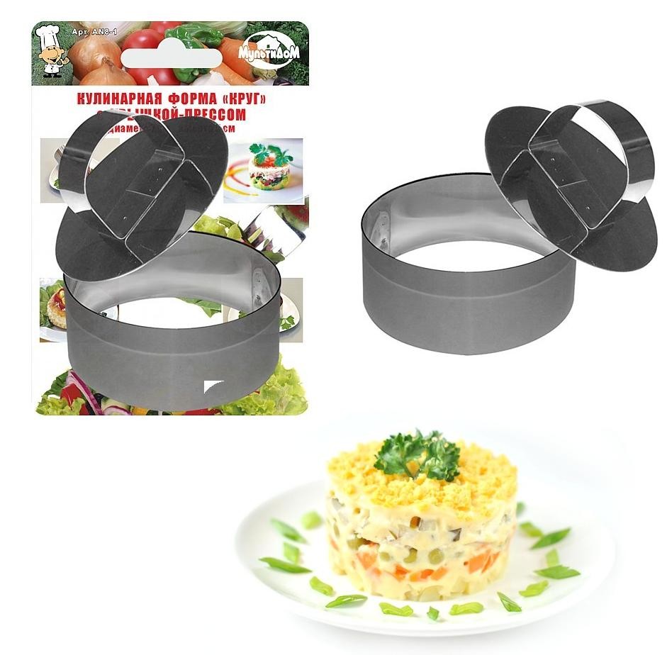 | Мультидом Трейдинг Кулинарная форма «Круг» (10х4,5 см) с прессом