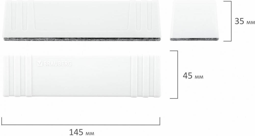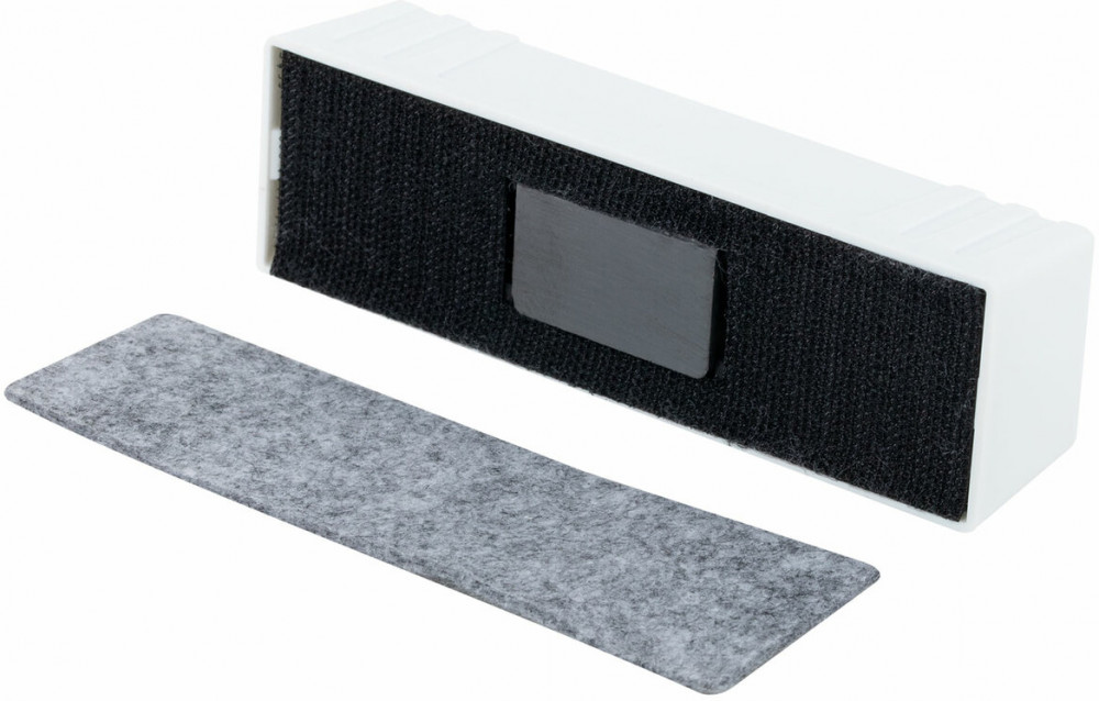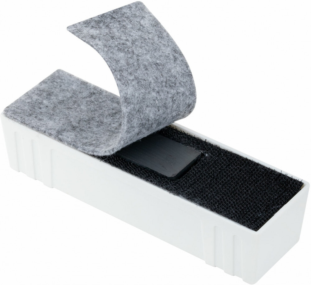 Магнитный стиратель Brauberg «Standard» со сменными салфетками предназначен для стирания сухим способом надписей, выполненных маркером, с белых досок. Выполнен из прочного пластика белого цвета в минималистичном дизайне. Обладает высоким качеством стирания. Стиратель прямоугольной формы со встроенным магнитом отлично крепится к любой магнитно-маркерной доске, что позволяет расположить его в любом месте рабочей поверхности доски. Размер — 45×145 мм. В комплект входит 5 сменных двусторонних вкладышей из фетра, которые крепятся при помощи липучек.