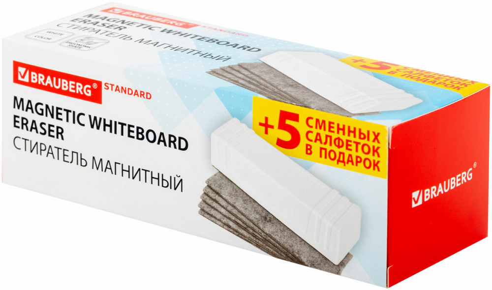 Стиратель магнитный Brauberg «Standard» со сменными салфетками — ваш незаменимый помощник в офисах и учебных заведениях. Высокое качество товара обеспечивает простоту использования и долговечность. Не откладывайте — заказывайте прямо сейчас!