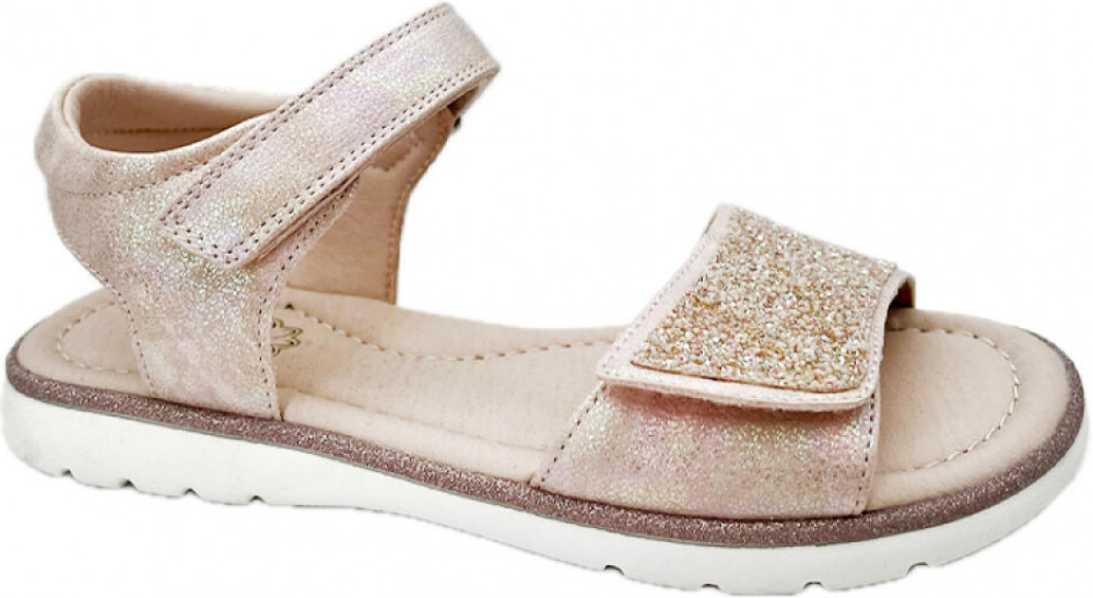 Нарядные розовые сандалии для девочки. Выполнены из перламутровой искусственной кожи и искусственной кожи с глиттером. Удобные ремни с липучками позволяют регулировать обувь на любой подъем. Подкладка и стелька выполнена из натуральной свиной кожи. Стелька имеет анатомический элемент для поддержания свода стопы в правильном положении. Модель имеет гибкую и легкую подошва из ТПР с противоскользящим протектором.