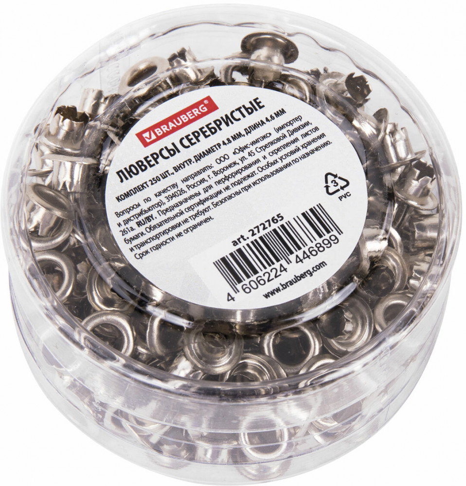 Brauberg Набор люверсовВ данный момент этот товар отсутствует в продаже. Возможно, у нас найдется аналогичный или похожий товар здесь. Люверсы Brauberg предназначены для защиты отверстий от механического повреждения (разрыва, износа) при сшивании бумаги, картона, баннерной ткани. Также подходят для скрапбукинга. Крепятся с помощью дырокола. Изготовлены из металла серебристого цвета. Длина — 4,6 мм, внутренний диаметр — 4,8 мм. 250 штук в комплекте. Поставляются в пластиковом цилиндре. Доверьтесь качеству и прочности люверсов Brauberg — закажите их прямо сейчас! |