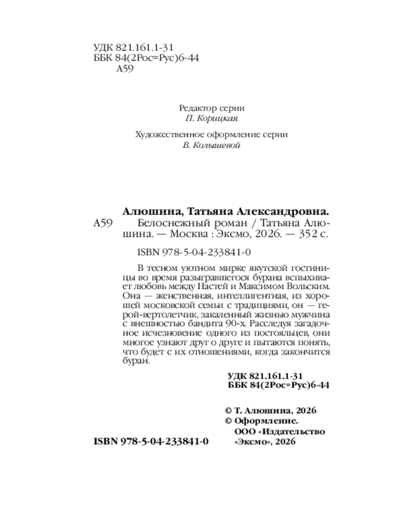 💳 Оплатить за товар можно при получении 🇰🇿 Есть бесплатная доставка по Казахстану от 1 дня 🎁 Копите бонусы с каждой покупки Серия: А у нас в городке (обложка) В тесном уютном мирке якутской гостиницы во время разыгравшегося бурана вспыхивает любовь между Настей и Максимом Вольским. Она — женственная, интеллигентная, из хорошей московской семьи с традициями, он — герой-вертолетчик, закаленный жизнью мужчина с внешностью бандита из 90-х. Расследуя загадочное исчезновение одного из постояльцев, они многое узнают друг о друге и попытаются понять, что будет с их отношениями, когда закончится буран. |