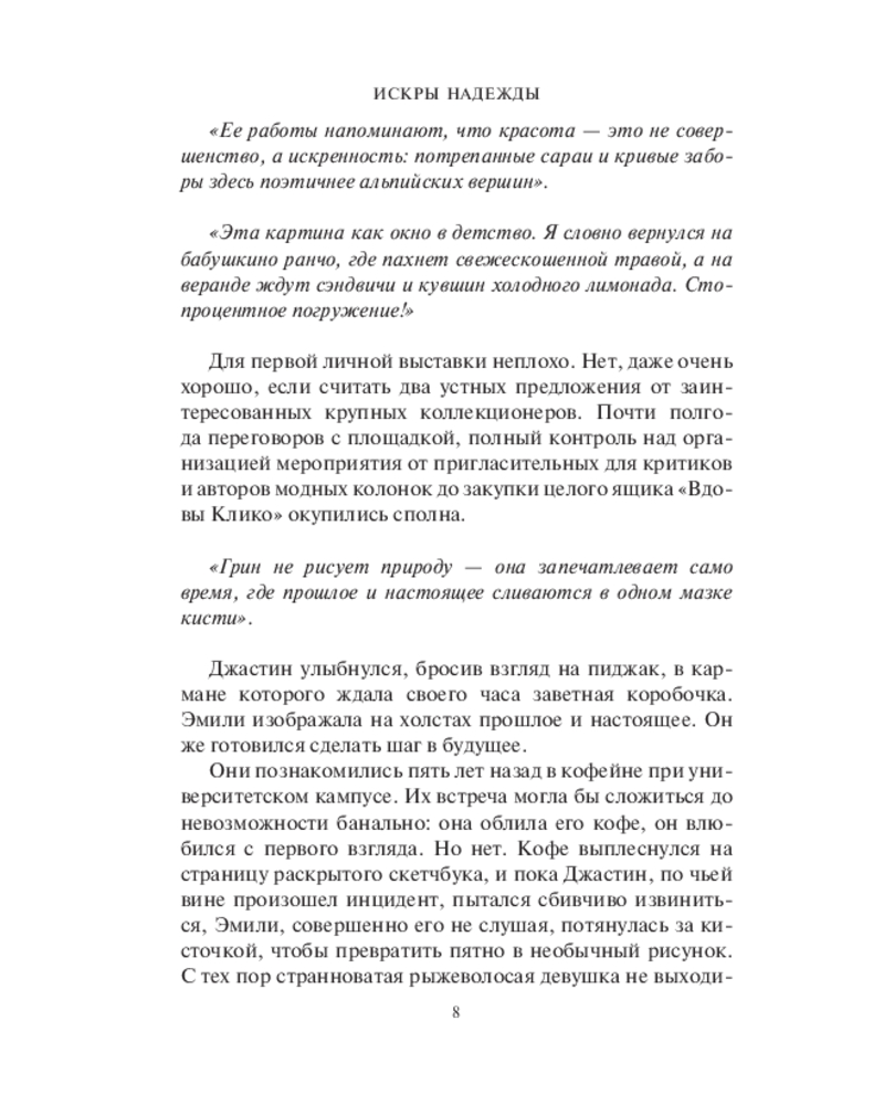💳 Оплатить за товар можно при получении 🇰🇿 Есть бесплатная доставка по Казахстану от 1 дня 🎁 Копите бонусы с каждой покупки Серия: Мужчина с мягким сердцем Эмили Грин — многообещающая молодая художница. Когда-то ее картины состояли из чистого света, но после трагической гибели жениха в душе не осталось ничего, кроме черной краски. Желая помочь дочери справиться с апатией и тоской, родители уговаривают Эмили провести несколько месяцев в Гленвуде — городе ее детства. |