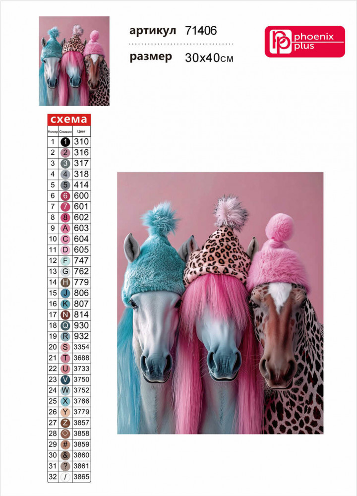 Феникс + Алмазная мозаика «Лошади в шапочках»-25% +59