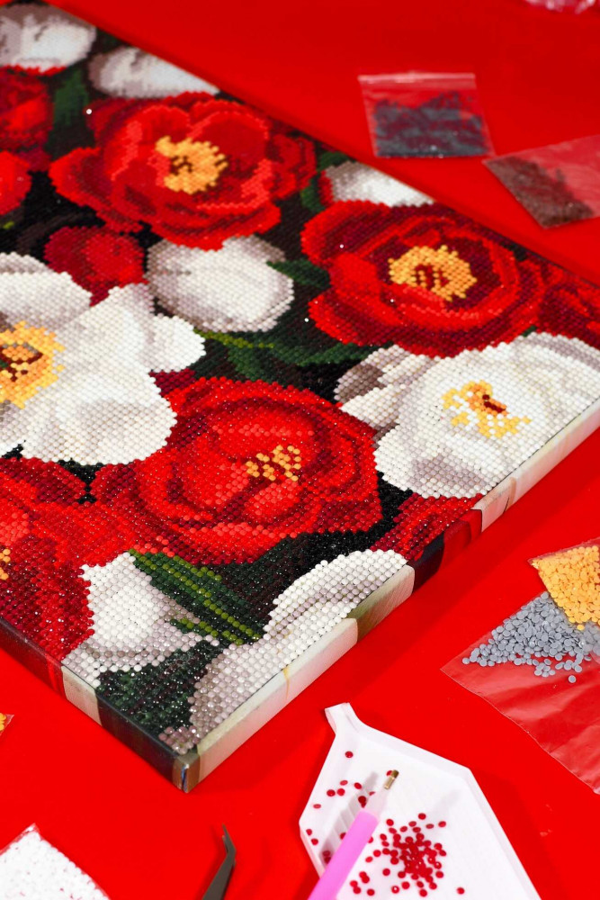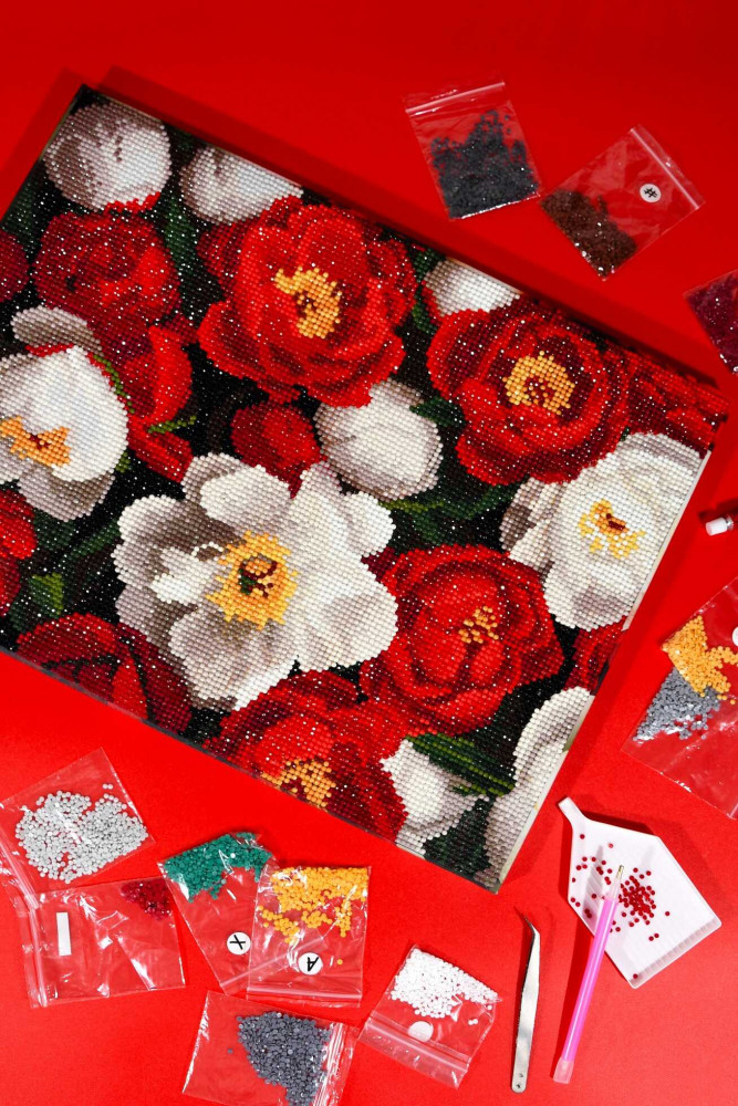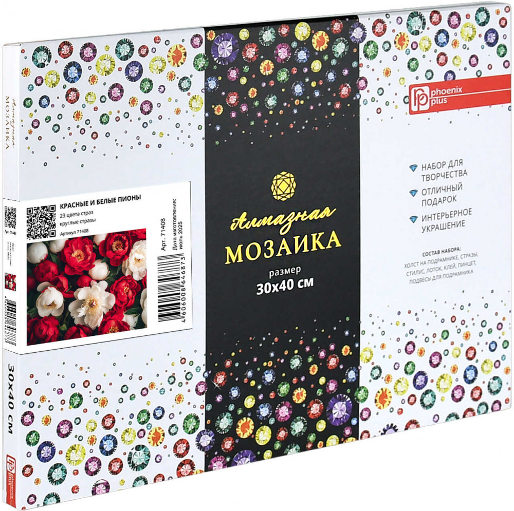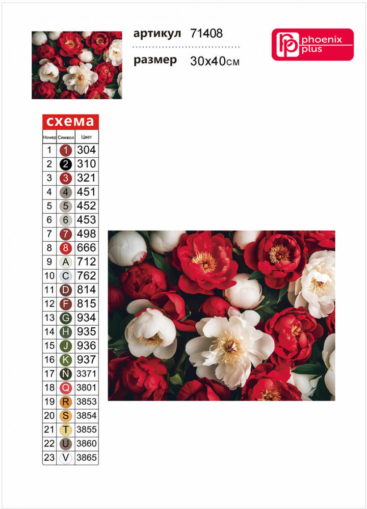 Феникс + Алмазная мозаика «Красные и белые пионы»-25% +59