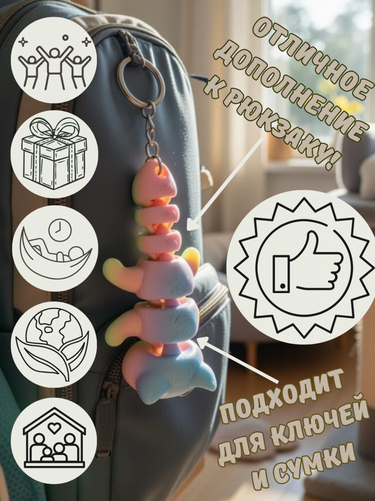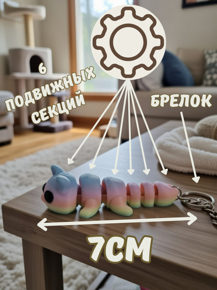 💳 Оплатить за товар можно при получении 🇰🇿 Есть бесплатная доставка по Казахстану от 1 дня 🎁 Копите бонусы с каждой покупки Брелок «Котогусеница» — компактный аксессуар для ключей, сумки или рюкзака, предназначенный для повседневного использования. Подвижная конструкция делает изделие удобным для использования в качестве тактильного антистресс-аксессуара. Брелок выполнен в разноцветном исполнении. Порядок цветов формируется случайным образом, каждый брелок уникален и может отличаться по цветовой последовательности. |
