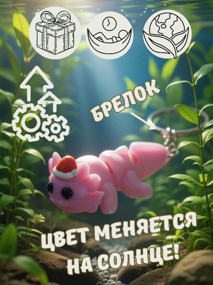 💳 Оплатить за товар можно при получении 🇰🇿 Есть бесплатная доставка по Казахстану от 1 дня 🎁 Копите бонусы с каждой покупки Брелок «Аксолотль» — компактный аксессуар для ключей, сумки или рюкзака, предназначенный для повседневного использования. Отличительной особенностью изделия является изменение цвета под воздействием солнечного света, что делает брелок необычным и привлекательным. Изделие изготовлено методом 3D-печати с аккуратной проработкой формы и деталей. Брелок лёгкий, компактный и удобный в использовании. Подходит в качестве сувенирного аксессуара и небольшого подарка. |