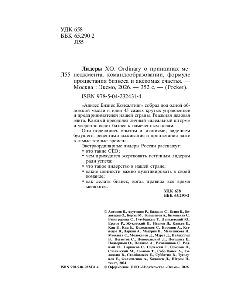 💳 Оплатить за товар можно при получении 🇰🇿 Есть бесплатная доставка по Казахстану от 1 дня 🎁 Копите бонусы с каждой покупки Серия: Бизнес. Pocket «Адизес Бизнес Консалтинг» собрал под одной обложкой мысли и идеи 45 самых крутых управленцев и предпринимателей нашей страны. Реальная деловая элита. Каждый преодолел личный «идеальный шторм» и уверенно ведет бизнес к намеченным целям. Они поделились опытом и знаниями, видением будущего, рецептами выживания и процветания даже в самые темные времена. |