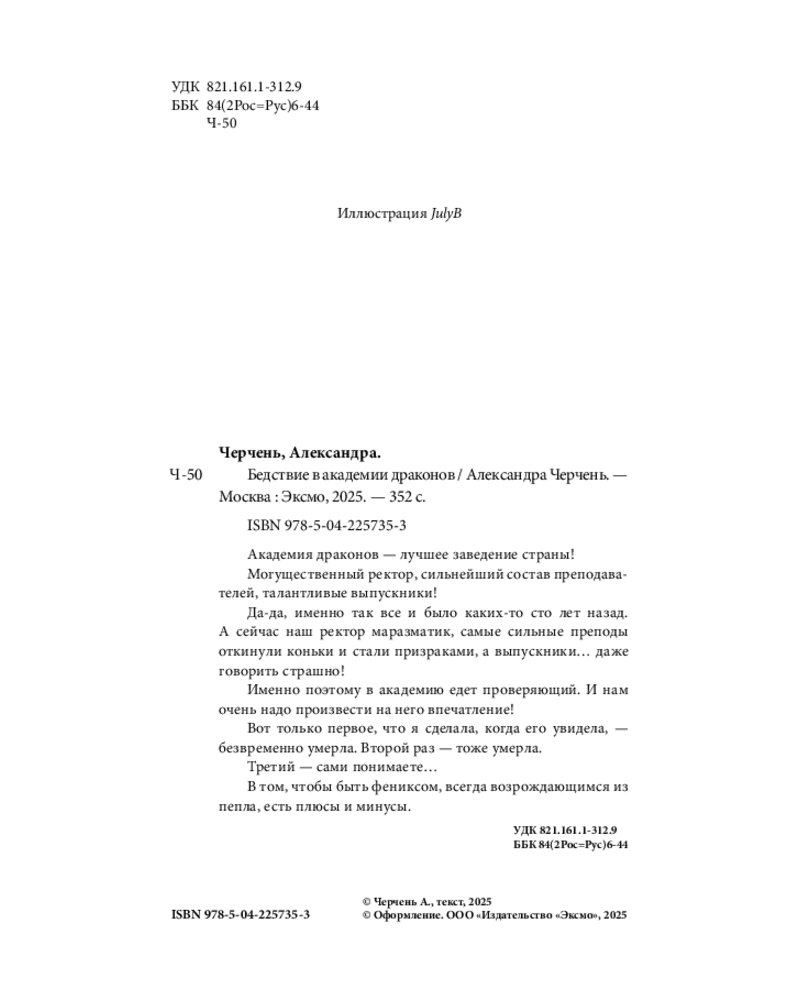 💳 Оплатить за товар можно при получении 🇰🇿 Есть бесплатная доставка по Казахстану от 1 дня 🎁 Копите бонусы с каждой покупки Серия: Эрганские истории Академия драконов — лучшее заведение страны! Могущественный ректор, сильнейший состав преподавателей, талантливые выпускники! Да-да, именно так всё и было каких-то сто лет назад. А сейчас наш ректор — маразматик, самые сильные преподы откинули коньки и стали призраками, а выпускники... |
