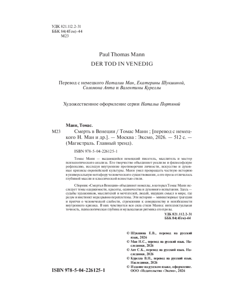 💳 Оплатить за товар можно при получении 🇰🇿 Есть бесплатная доставка по Казахстану от 1 дня 🎁 Копите бонусы с каждой покупки Серия: Магистраль. Главный тренд Томас Манн — выдающийся немецкий писатель, мыслитель и мастер психологического анализа. Его творчество объединяет реализм и философскую рефлексию, исследуя внутренние противоречия личности, искусство и духовные кризисы европейской культуры. Манн умел превращать частную историю в универсальную метафору человеческого существования, а его проза отличалась глубиной мысли и классической ясностью стиля. |