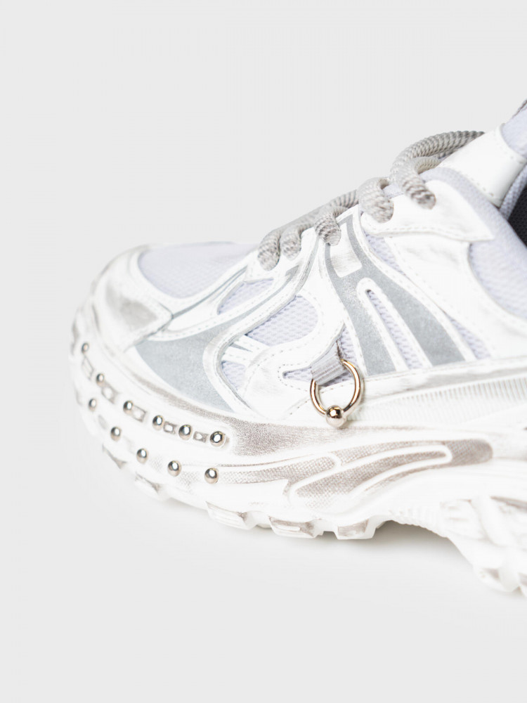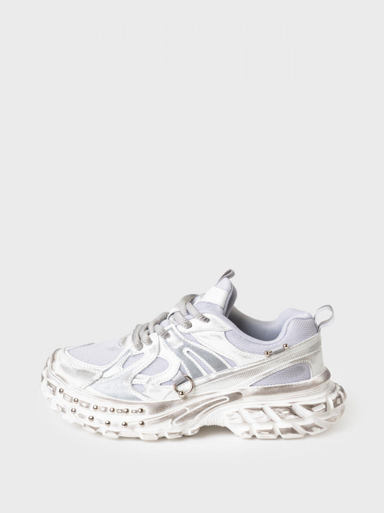 Молодежные кроссовки на массивной подошве. Подошва и верх обуви декорированы металлическими клепками и пирсингом. Кроссовки выполнены из дышащего текстиля и искусственной кожи с повышенной износостойкостью. Верх обуви и подошва имеют эффект стёртости. Профилированная съемная стелька из натуральной кожи с анатомической формой подсводника обеспечивает правильную нагрузку на стопу. В носочной части обуви стоит текстильная подкладка c высоким содержанием хлопка 80%, которая обладает высокой гигроскопичностью. В пяточной части обуви текстильная подкладка обладает хорошей износостойкостью. Кроссовки имеют светоотражающие элементы. Формоустойчивый задник поддерживает стопу в правильном положении. Эргономичная форма колодки обеспечивает правильное формирование стопы ребенка. При всей своей массивности подошва из ЭВА очень легкая.