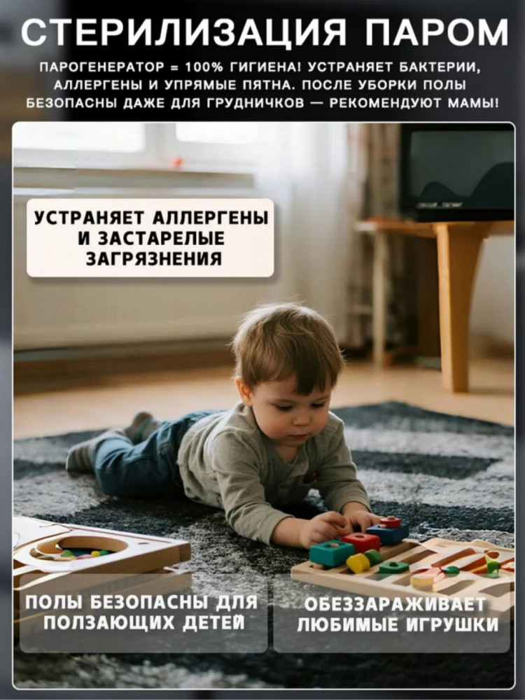 Такой пароочиститель — настоящий помощник в домашних делах. Сохраните свежесть мебели и других материалов у вас дома. Эко уборка без использования бытовой химии: техника с обработкой горячим паром очищает въевшуюся грязь с удалением до 99.9% всех микробов и бактерий. Чистота и сияющая чистка без вреда здоровью.