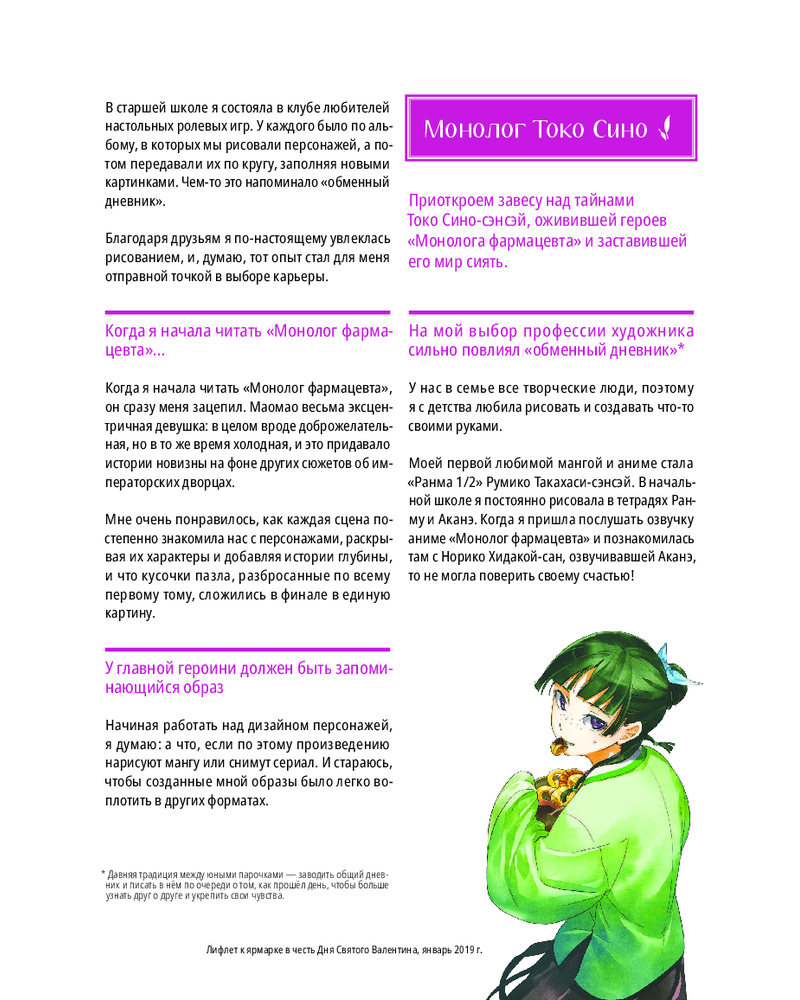 💳 Оплатить за товар можно при получении 🇰🇿 Есть бесплатная доставка по Казахстану от 1 дня 🎁 Копите бонусы с каждой покупки Серия: Комильфо. Манга. Артбуки Артбук «Монолог фармацевта» — ваш проводник в мир любимой истории. Здесь собраны работы иллюстратора ранобэ Токо Сино, концепты персонажей с её комментариями, неопубликованные дизайны и эксклюзивные материалы, а также рассказ художницы о своём творческом пути. Более трёхсот артов позволят вам детально изучить главных героев и их окружение. |
