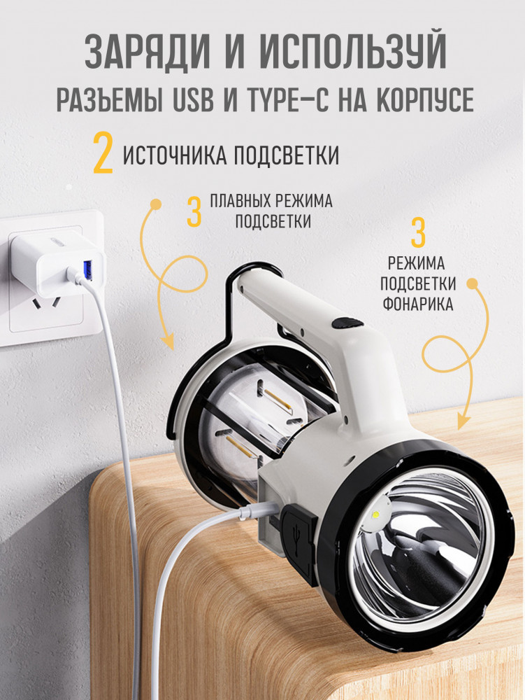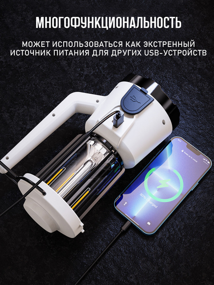 💳 Оплатить за товар можно при получении 🇰🇿 Есть бесплатная доставка по Казахстану от 1 дня 🎁 Копите бонусы с каждой покупки Кемпинговый фонарь-прожектор представляет собой универсальное осветительное решение для использования в походах, на даче и во многих других ситуациях. Этот фонарь сочетает в себе функциональность ручного фонаря-прожектора и подвесного освещения, обеспечивая широкий спектр возможностей. Большой фонарь заряжается от USB кабеля, что является преимуществом, т.к его можно подзарядить от прикуривателя автомобиля или от переносной батареи Power bank (повербанка). Данный светодиодный прожектор идеально подойдет охотникам, рыбакам, туристам для использования на природе. Также пригодится на даче для кемпинга, и поисково-спасательных работ. Наш прожекторный аккумуляторный фонарь отличный подарок любимому, мужчине, отцу на 23 и 14 февраля и день рождения. Фонарь на батарейках кемпинговый уличный с аккумулятором. |