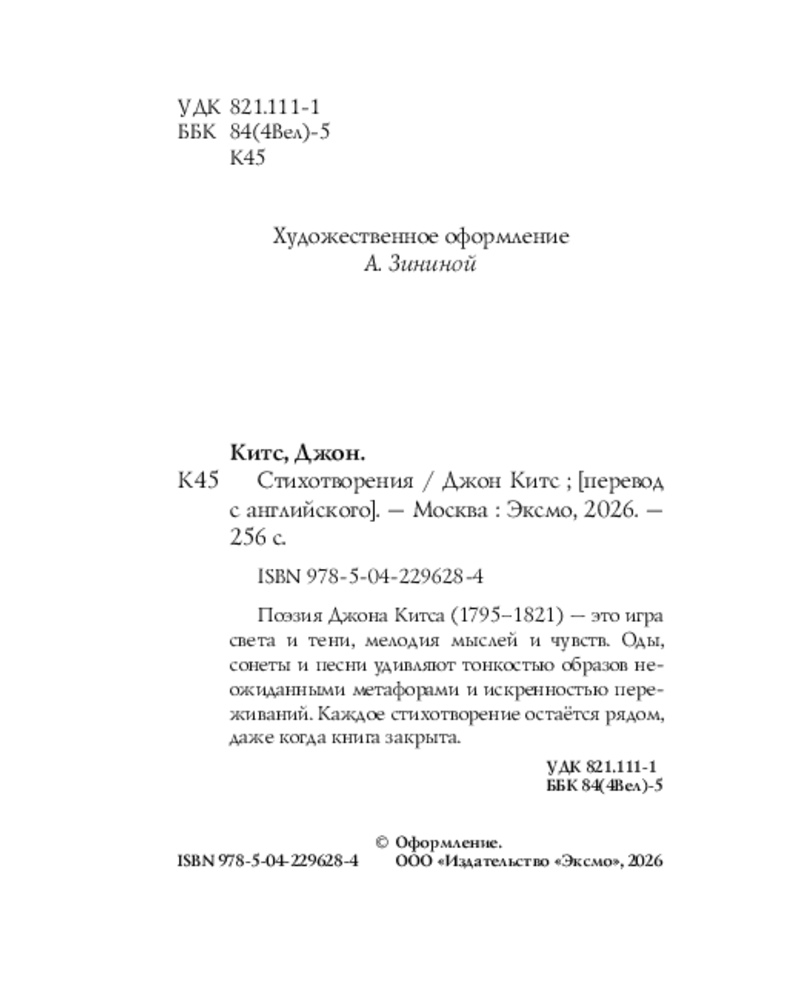 💳 Оплатить за товар можно при получении 🇰🇿 Есть бесплатная доставка по Казахстану от 1 дня 🎁 Копите бонусы с каждой покупки Серия: Собрание больших поэтов Поэзия Джона Китса (1795–1821) — это игра света и тени, мелодия мыслей и чувств. Оды, сонеты и песни удивляют тонкостью образов, неожиданными метафорами и искренностью переживаний. Каждое стихотворение остаётся рядом, даже когда книга закрыта. |