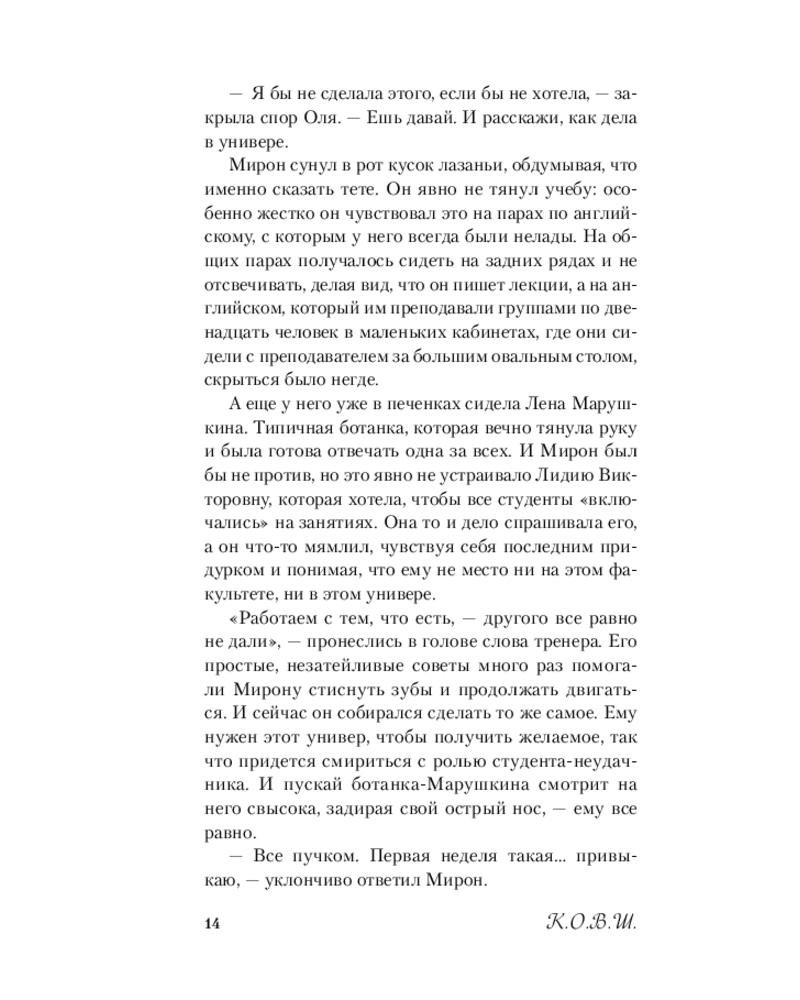 💳 Оплатить за товар можно при получении 🇰🇿 Есть бесплатная доставка по Казахстану от 1 дня 🎁 Копите бонусы с каждой покупки Серия: Young Adult. Соври, что не любишь. Романтика от К.О.В.Ш. Жизнь Мирона разлетелась на куски: его спортивная карьера под угрозой, сердце разбито, а от веры в людей ничего не осталось. Он поступает в университет, но понимает, что вылетит еще до первой сессии, а этого допустить никак нельзя. Тогда Мирон предлагает местной ботанке Лене Марушкиной «сотрудничество на взаимовыгодных условиях». |