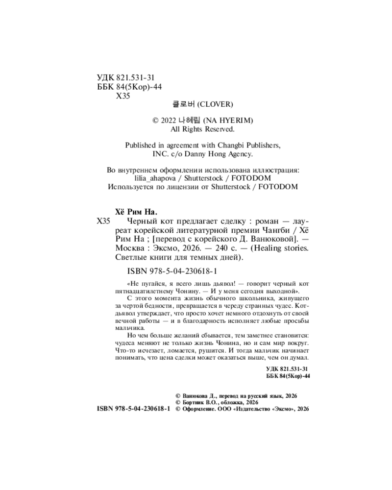 💳 Оплатить за товар можно при получении 🇰🇿 Есть бесплатная доставка по Казахстану от 1 дня 🎁 Копите бонусы с каждой покупки Серия: Healing stories. Светлые книги для темных дней «Не пугайся, я всего лишь дьявол! — говорит черный кот пятнадцатилетнему Чонину. — И у меня сегодня выходной». |