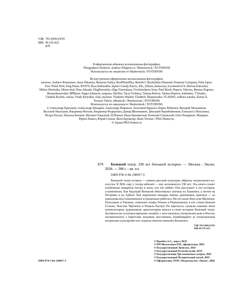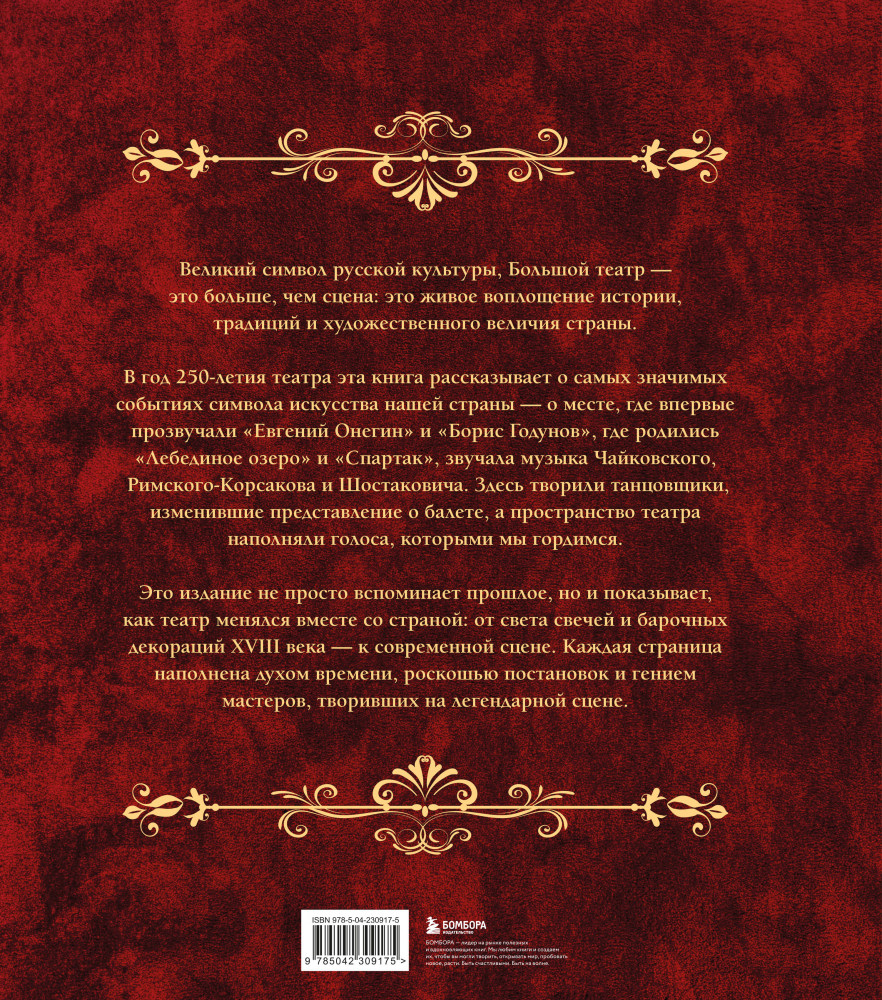 💳 Оплатить за товар можно при получении 🇰🇿 Есть бесплатная доставка по Казахстану от 1 дня 🎁 Копите бонусы с каждой покупки Серия: Подарочные издания. Балет Большой театр сегодня — символ русской культуры, образец театрального искусства. В 2026 году у театра юбилей — ему исполняется 250 лет. Эта книга станет особенным подарком театру и всем, кто его любит. Она расскажет о его истории, становлении. Как будущий «Большой» обосновался сначала на Знаменке, а потом на Петровке и на Арбате. Как переживал пожары, войны, революции, кризисы — не единожды восстанавливался и продолжал работать. На его сцене блистали Шаляпин, Плисецкая и Уланова, ставились оперы Глинки и Рахманинова, в его стенах бывали Сталин, Уинстон Черчилль и Фидель Кастро. Не перечесть, сколько славных имен композиторов, художников, архитекторов вписал в свою историю Большой театр. Загляните же за кулисы времени: узнайте, с чего началось театральное дело в России, познакомьтесь с сюжетами знаковых постановок, понаблюдайте за театральными интригами и раскройте все секреты величественного «Большого». |