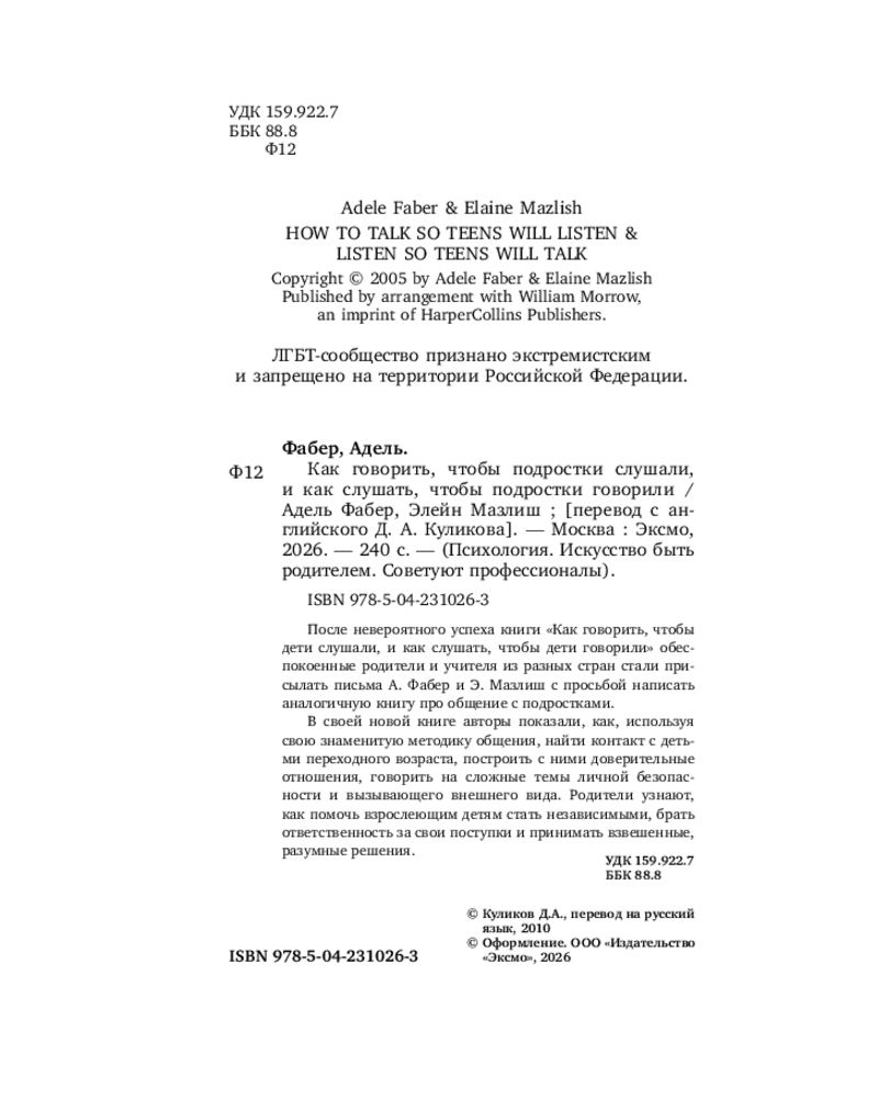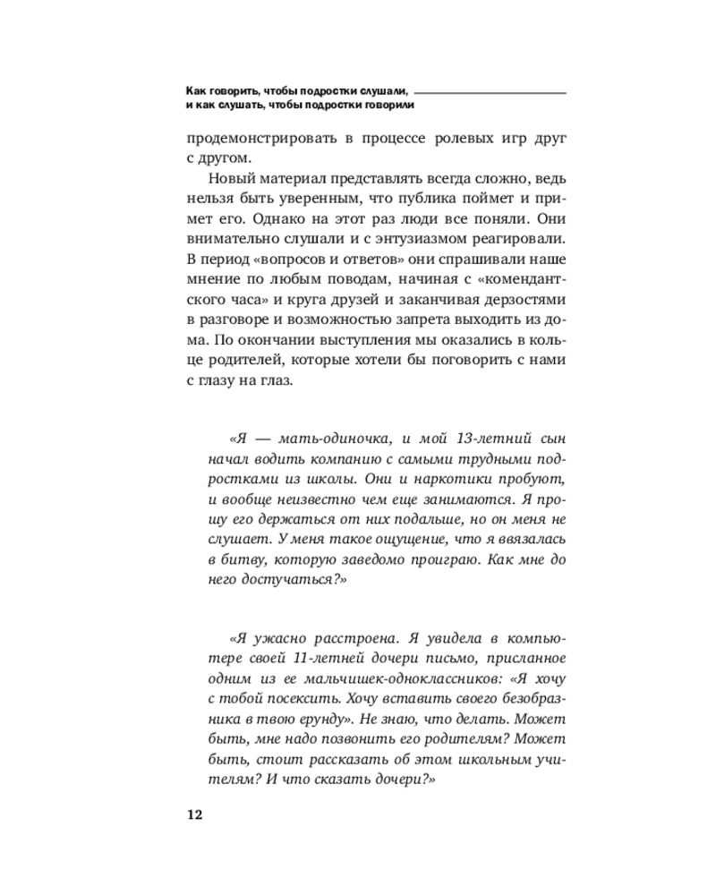 💳 Оплатить за товар можно при получении 🇰🇿 Есть бесплатная доставка по Казахстану от 1 дня 🎁 Копите бонусы с каждой покупки Серия: Психология. Искусство быть родителем. Советуют профессионалы (обложка) После невероятного успеха книги «Как говорить, чтобы дети слушали, и как слушать, чтобы дети говорили» обеспокоенные родители и учителя из разных стран стали присылать письма А. Фабер и Э. Мазлиш с просьбой написать аналогичную книгу про общение с подростками. |