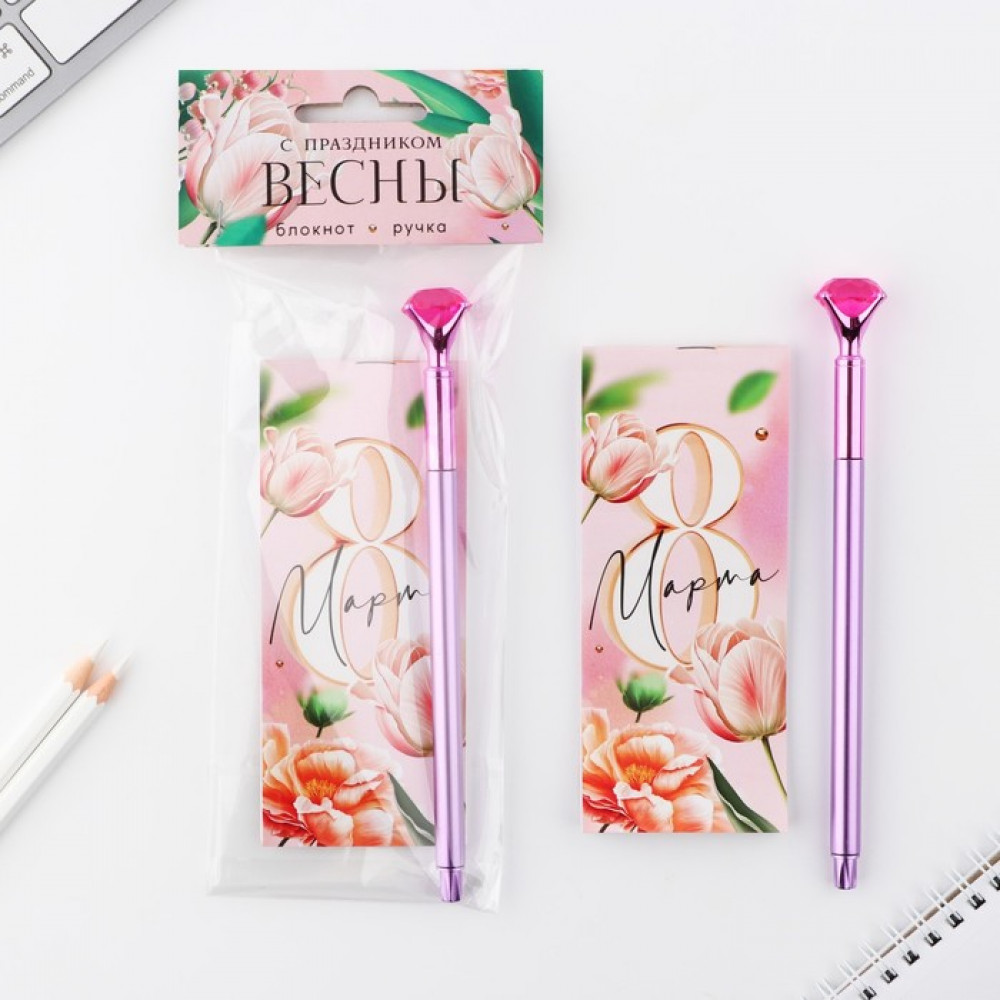 Подарите внимание и заботу с компактным и стильным набором «8 марта: С праздником весны». Практичные аксессуары помогут фиксировать идеи, делать заметки и радоваться каждому моменту творчества.
