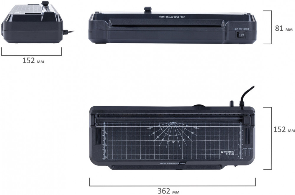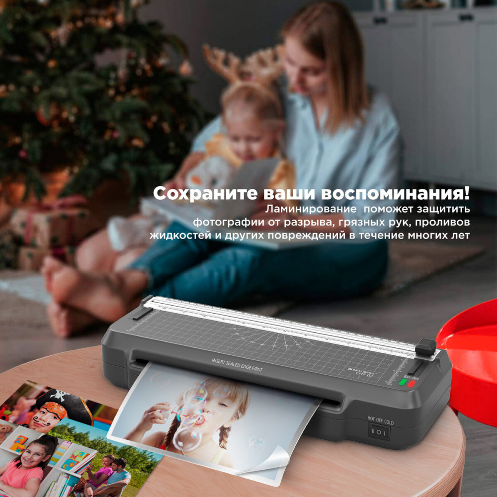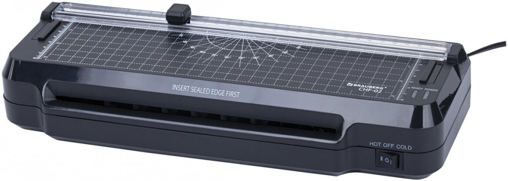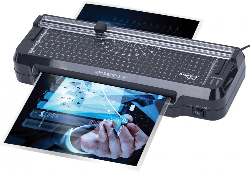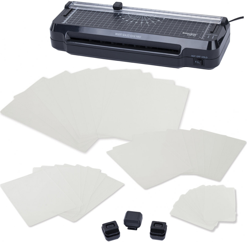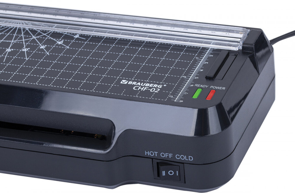 Ламинатор 3 в 1 BRAUBERG CHF-02 со встроенным резаком и съемным обрезчиком углов отлично подойдет для работы дома и в офисе. Ламинируйте документы, меню, рисунки, фотографии. В подарок вы получите 3 сменных лезвия для резака и 40 плёнок формата А4-А8.