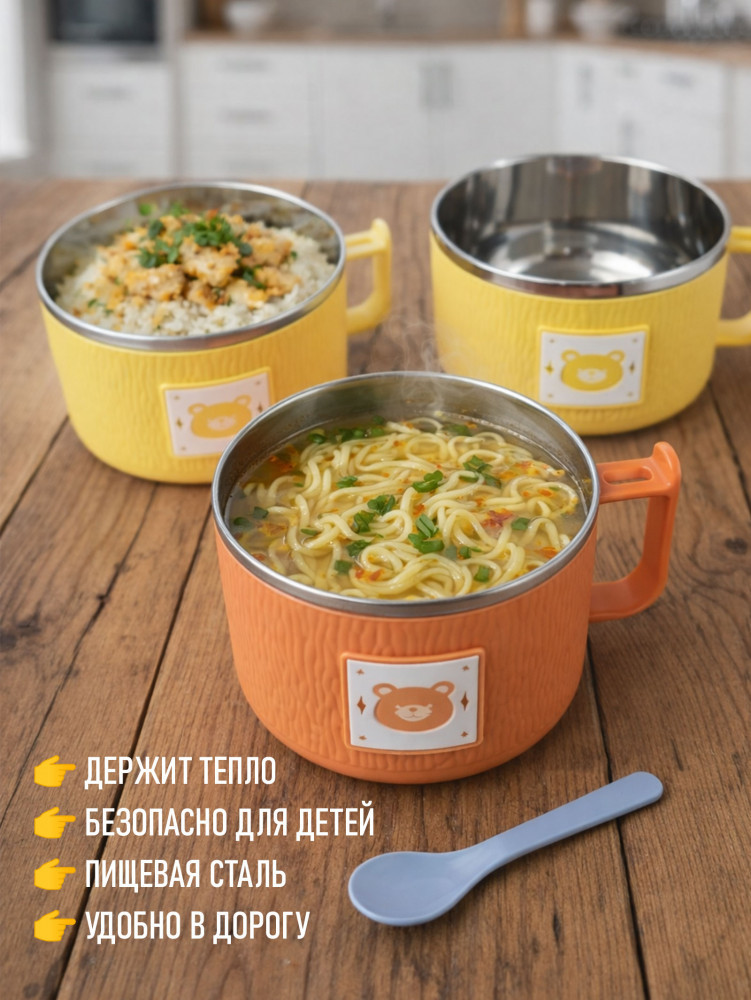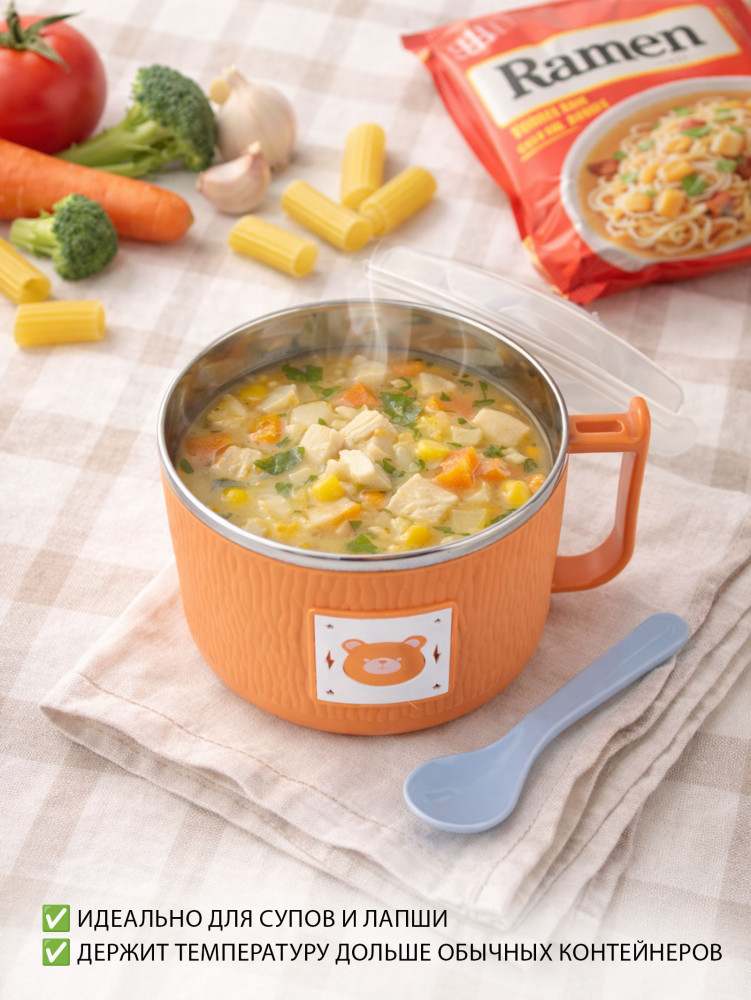 💳 Оплатить за товар можно при получении 🇰🇿 Есть бесплатная доставка по Казахстану от 1 дня 🎁 Копите бонусы с каждой покупки Термос-миска ланчбокс с ложкой — контейнер для супа и лапши из нержавеющей стали 304. |