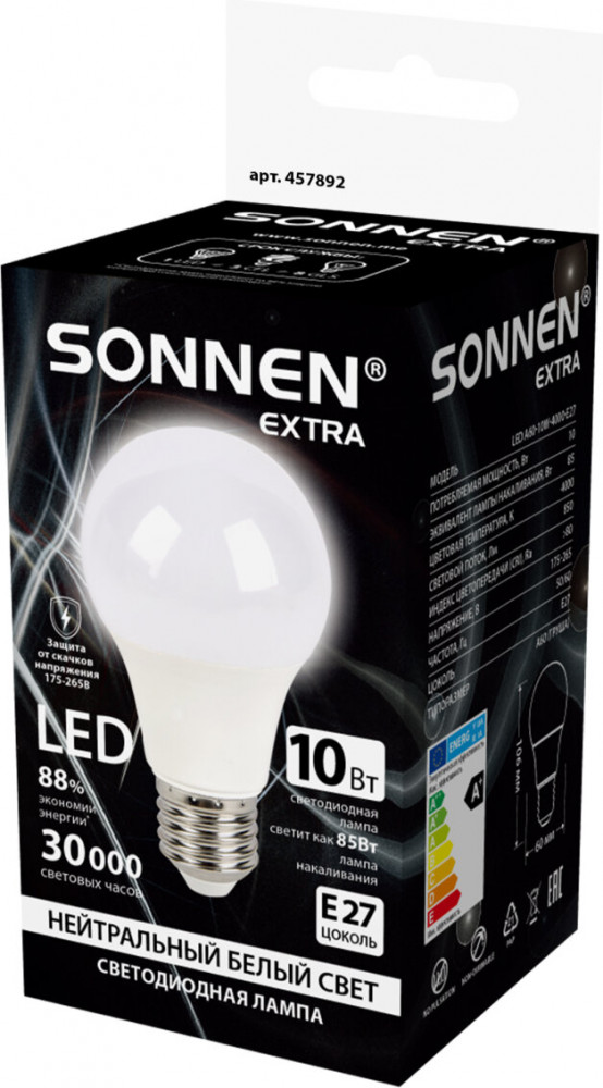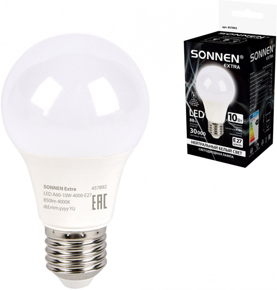 💳 Оплатить за товар можно при получении 🇰🇿 Есть бесплатная доставка по Казахстану от 1 дня 🎁 Копите бонусы с каждой покупки Светодиодная лампа Sonnen EXTRA компактного размера. Срок службы лампы составляет не менее 30000 часов, что примерно в 30 раз больше, чем у обычной лампы накаливания. Оснащена цоколем типа Е27 и излучает нейтральный белый cвет. Отличается длительным сроком службы. Имеет грушевидную форму колбы и сделана из белого матового пластика. Мощность лампы составляет 10 Вт. Представленная модель дает световой поток 850 Лм, а цветовая температура равна 4000 K. Диаметр лампы составляет 60 мм. |