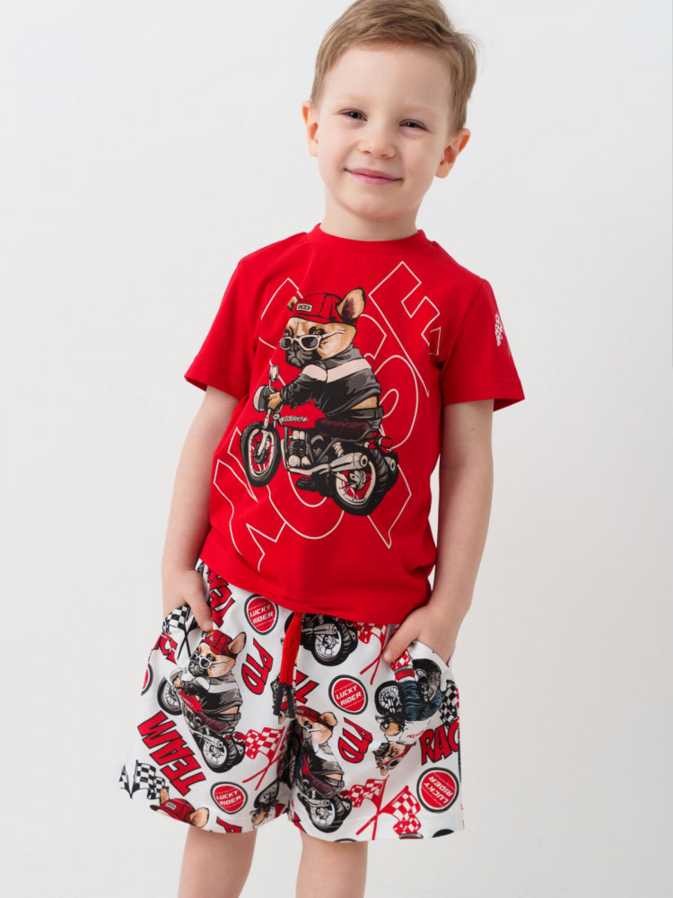 футболка: 95% хлопок, 5% эластан; шорты: 100% хлопок