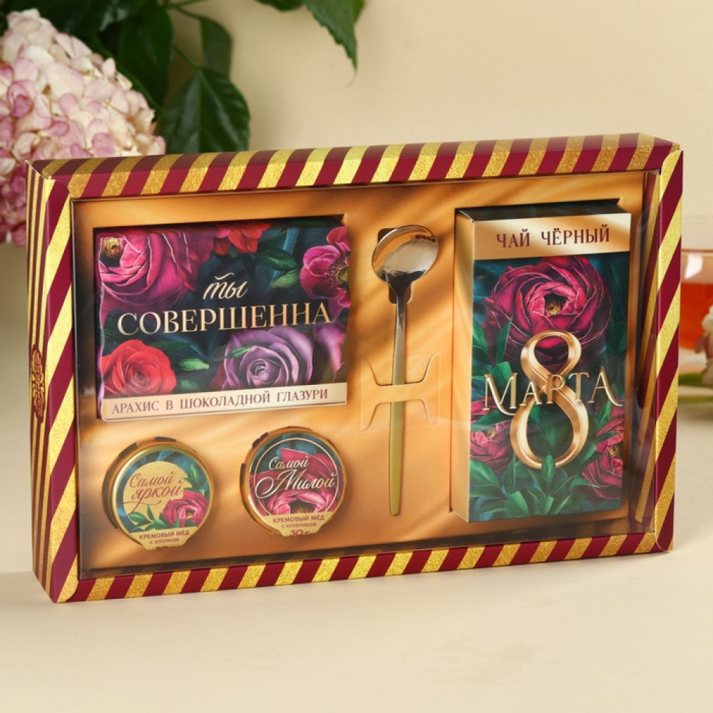 Фабрика счастья Подарочный набор «Ты совершенна»В данный момент этот товар отсутствует в продаже. Возможно, у нас найдется аналогичный или похожий товар здесь. Подарочный набор «Ты совершенна» — нежный и вкусный комплимент, который подчеркнёт заботу и внимание. Идеальное сочетание сладостей и ароматного чая создаёт атмосферу уюта и удовольствия, делая подарок по-настоящему особенным. |