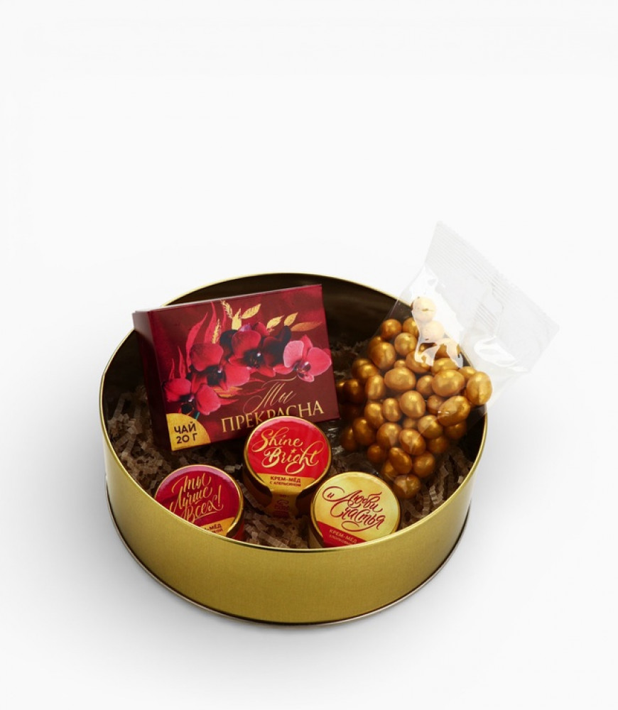 Фабрика счастья Набор «8 марта»В данный момент этот товар отсутствует в продаже. Возможно, у нас найдется аналогичный или похожий товар здесь. Подарочный набор «8 марта» — сладкий и ароматный комплимент к весеннему празднику. Нежный крем-мёд с разными вкусами, чёрный чай и арахис в шоколадной глазури создадут атмосферу уюта и подарят настоящее удовольствие. Идеальный подарок для коллег, подруг и близких. |