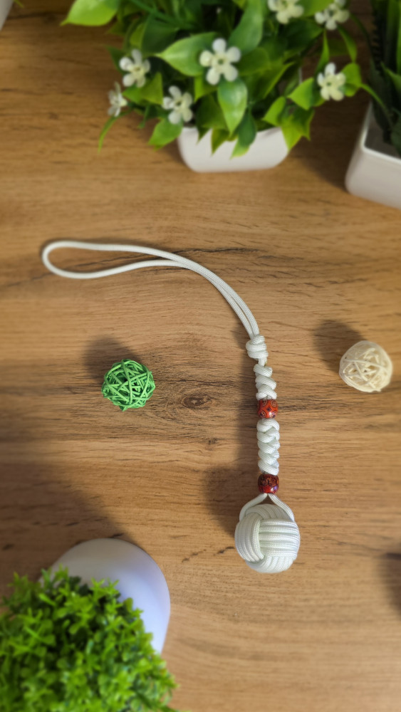 Стильный и практичный брелок ручной работы в технике плетения «Обезьяний кулак». Это плотный узел сферической формы, который не только выглядит эффектно, но и отличается высокой прочностью. Брелок изготовлен из качественного паракорда — износостойкого материала, устойчивого к влаге, загрязнениям и механическим нагрузкам. Благодаря плотному плетению аксессуар долго сохраняет форму и внешний вид даже при активном использовании.