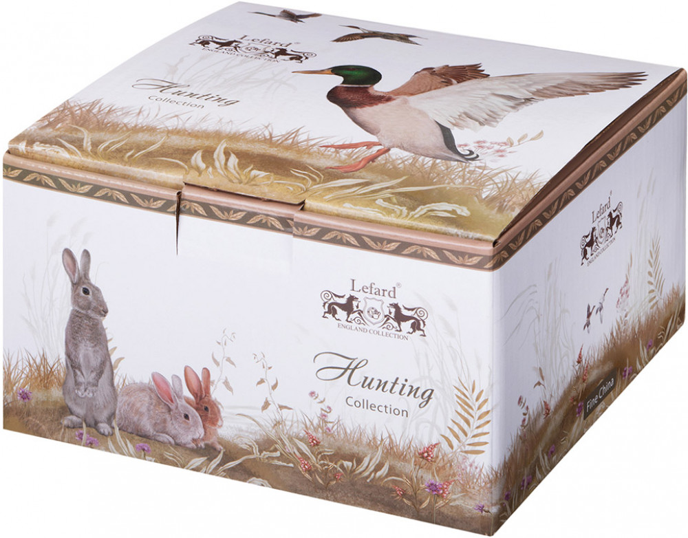 Эксклюзивная коллекция «Hunting» («Охота») от дизайнеров ТМ Lefard с одним из самых традиционных и популярных сюжетов на белоснежном фарфоре. Блестящие зарисовки из мира природы глазами охотника-фотографа: лисы, зайцы, фазаны, тетерева... притаившиеся и гордо расхаживающие в дикой природе. Эта коллекция для тех, кто любит наблюдать за настоящими хозяевами лесов и прудов, любоваться красотой окружающего мира. Теплые тона, современные формы, удобные ручки, оптимальные объемы. В коллекции кружки, чайные пары, закусочные тарелки, блюда чайный и столовый сервизы. Красочная индивидуальная упаковка. Это прекрасный подарок для себя и своих близких! Посуда прошла сертификацию. Безопасна для контакта с пищевыми продуктами. Мыть мягкими моющими неабразивными средствами. Можно смело использовать в микроволновой печи, мыть в посудомоечной машине.