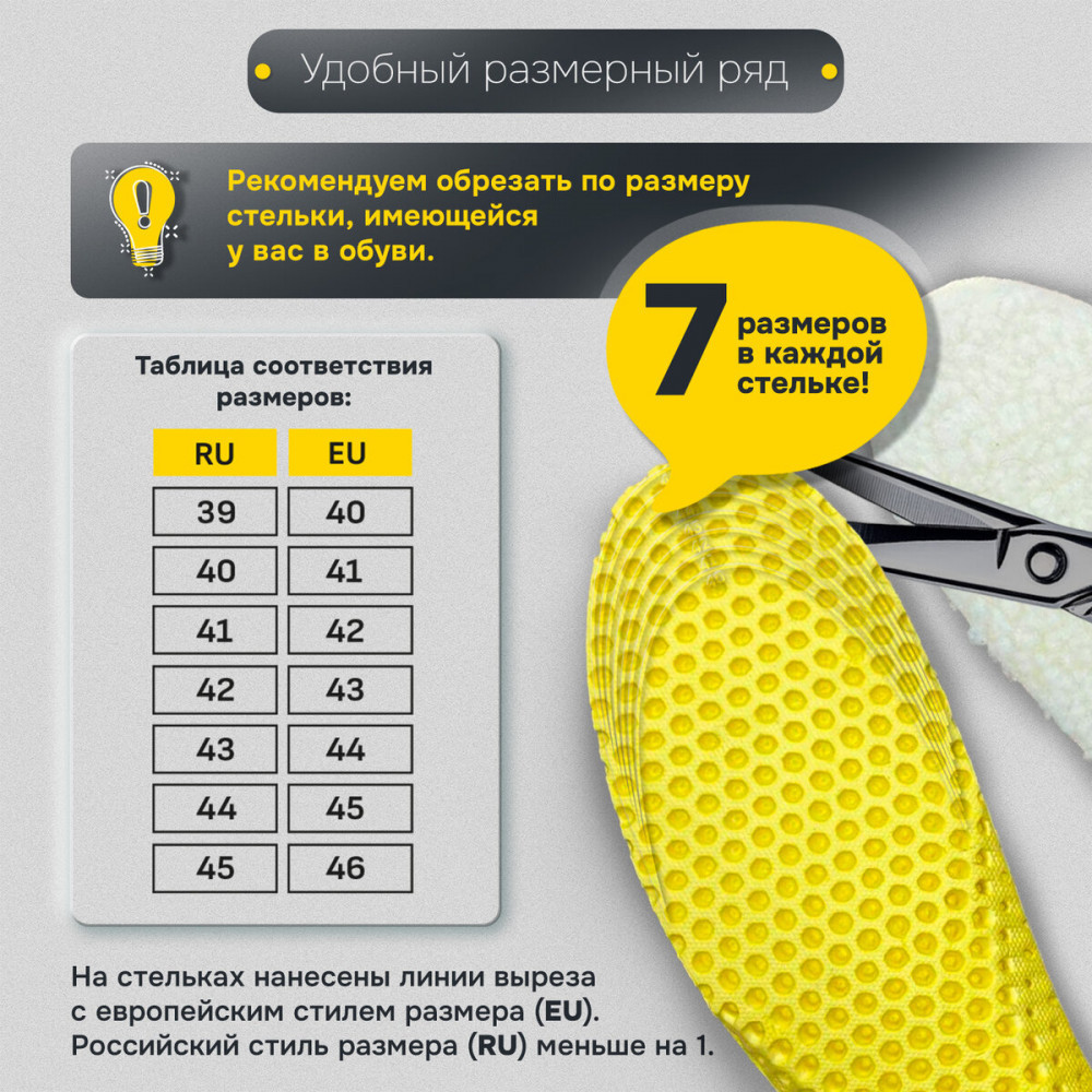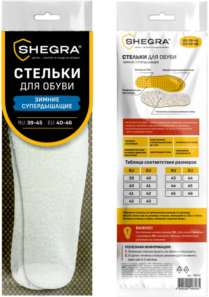 💳 Оплатить за товар можно при получении 🇰🇿 Есть бесплатная доставка по Казахстану от 1 дня 🎁 Копите бонусы с каждой покупки Стельки для обуви ЗИМНИЕ СУПЕРДЫШАЩИЕ SHEGRA отлично подойдут для любой обуви, обеспечат комфорт при ходьбе и оптимальный микроклимат. |