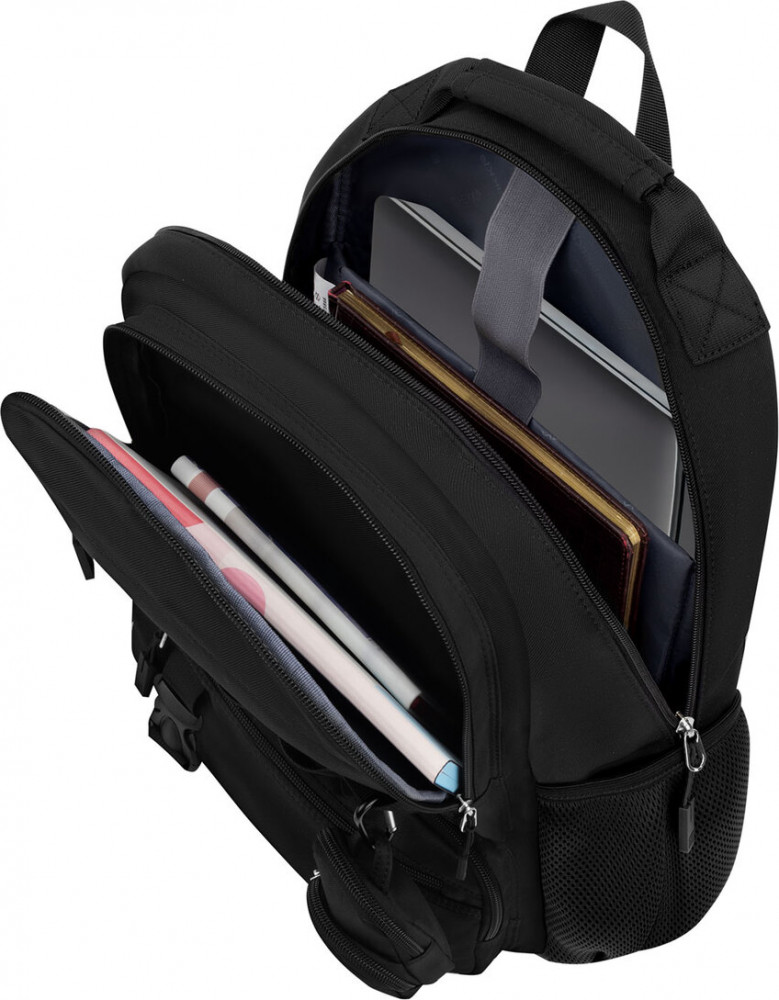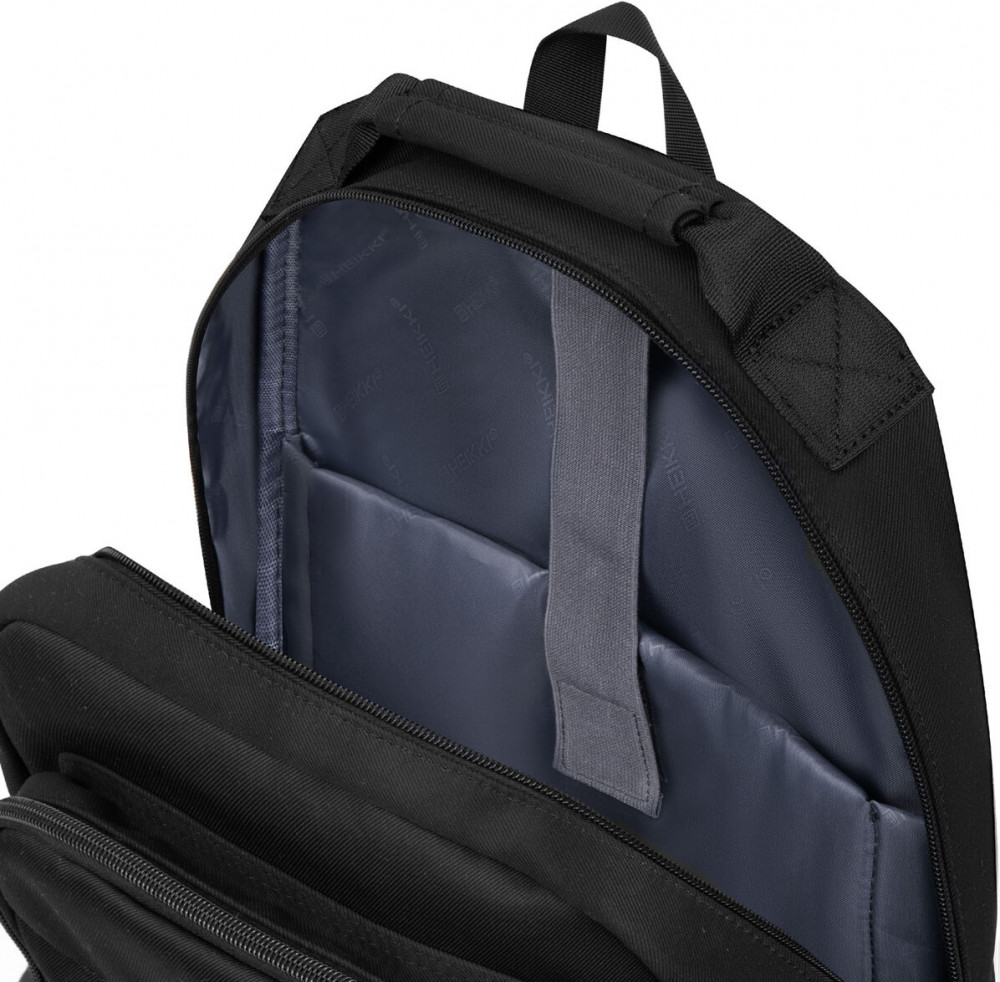 Одно вместительное отделение и множество карманов позволят упорядоченно разложить большое количество вещей различных размеров, в зависимости от целей использования рюкзака. Важная деталь — это отделение для ноутбука с диагональю экрана до 15,6″. Плотные стенки и дно защитят гаджет от механических повреждений, а эластичная лента на липучке надежно его зафиксирует. В основном отделении имеются также карман на молнии и карман-органайзер для удобного размещения как письменных принадлежностей, так и документов, аксессуаров и других личных вещей.