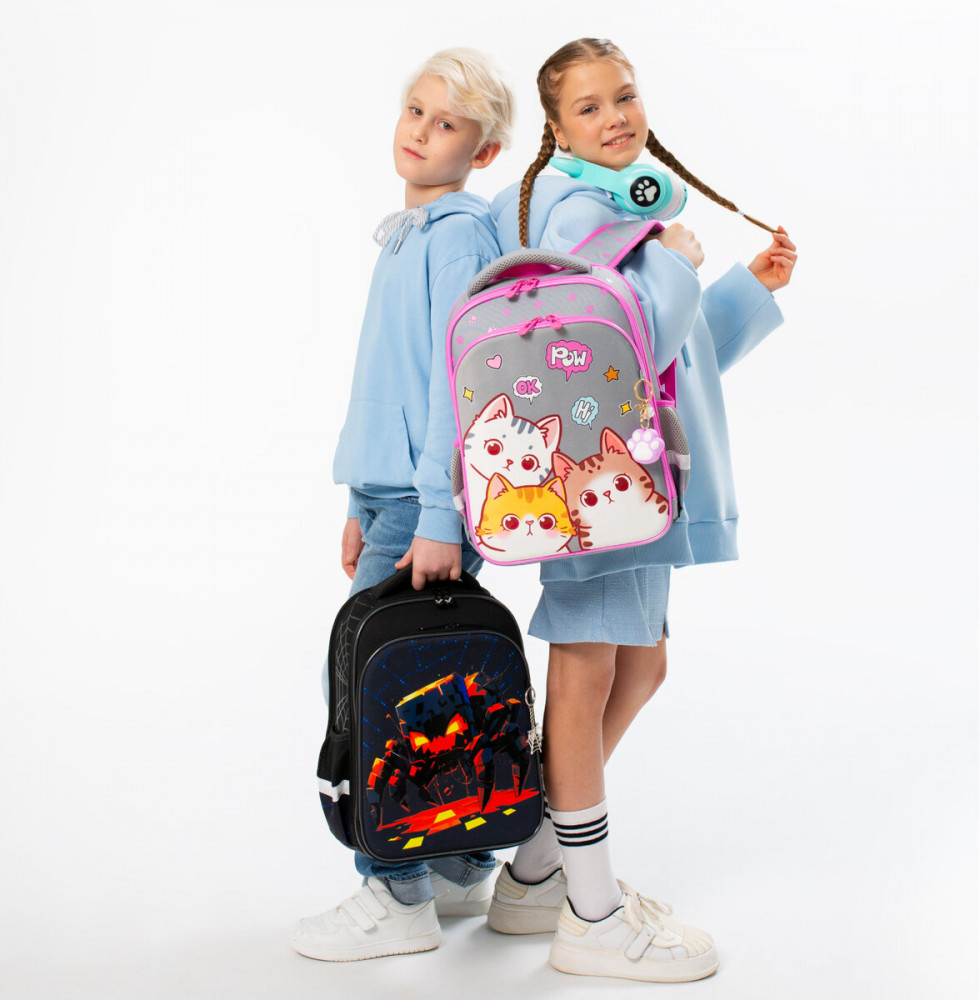 Яркая этикетка расположена на передней стороне ранца, делая его более заметным на полке магазина. Информация на ней отражает главные потребительские свойства, помогая покупателю принять решение о покупке.