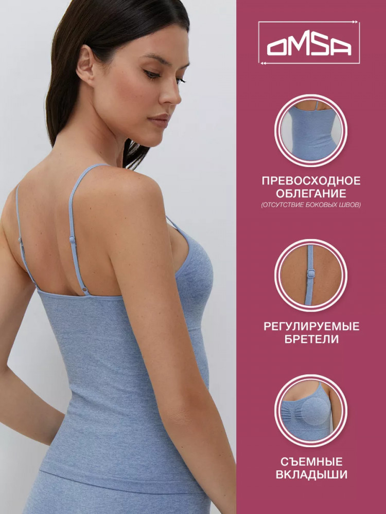 Omsa Майка-топ женская на тонких регулируемых бретелях с вкладышами