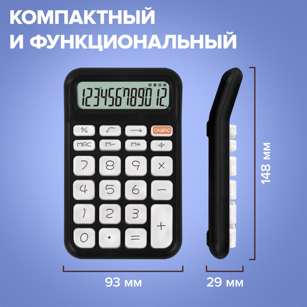 💳 Оплатить за товар можно при получении 🇰🇿 Есть бесплатная доставка по Казахстану от 1 дня 🎁 Копите бонусы с каждой покупки Настольный калькулятор Brauberg KW-500 сочетает стильный дизайн корпуса с продуманной эргономикой: объемные 3D-кнопки обеспечивают тактильный комфорт при работе. Калькулятор выполняет все основные арифметические действия: вычисления с процентами, извлечение квадратного корня, работу с памятью. Двенадцатиразрядный дисплей отображает большие значения с высокой точностью округления. Корпус калькулятора имеет округлые формы и лаконичный дизайн, а его 3D-кнопки обладают приятным ходом и мягким звуком нажатия. Функция автоматического отключения (через 8–10 минут бездействия) позволяет продлить срок службы без замены батареи. |
