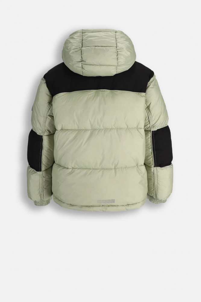 Наша стеганая куртка модного зеленого цвета с контрастными черными вставками сочетает в себе функциональность и стиль. Водонепроницаемая и оснащенная капюшоном , она обеспечивает защиту от дождя и снега, а благодаря светоотражающим элементам повышает безопасность в темное время суток.